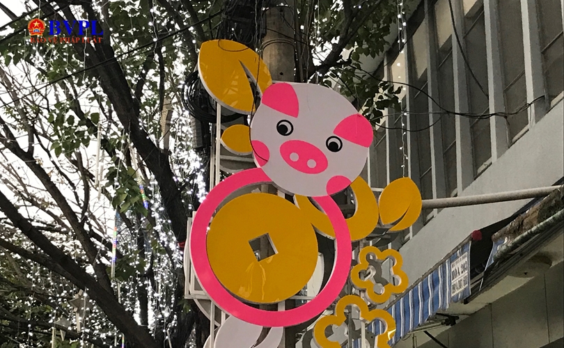 Chú Heo - biểu tượng năm Kỷ Hợi được treo dọc các tuyến đường chính của thành phố.