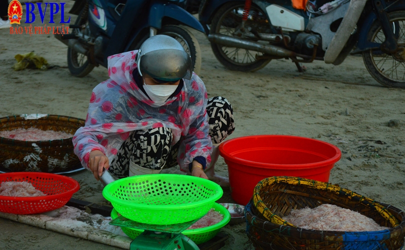 Để có được những lộc biển này, người dân cũng phải vô cùng vất vả mới đánh bắt được. Mùa này, ngay từ sáng sớm, từng quầng ruốc biển rất lớn đang di chuyển men theo những mép sóng, có lúc nổi dật dờ theo con sóng biển ven bờ, có lúc nằm dày đặc ngay bờ biển. (ảnh: LT)