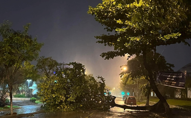 Mưa lớn kèm gió giật mạnh khiến một số cây cối ngã đổ. (Ảnh: LT)