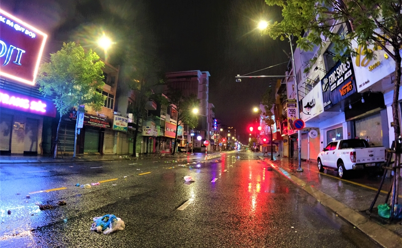 Bắt đầu từ 20h ngày 28/9, Đà Nẵng mới thực hiện lệnh cấm đường nhưng từ sớm người dân đã nghiêm túc thực hiện khuyến cáo ở yên trong nhà trước khi bão Noru đổ bộ vào đất liền, lượng xe di chuyển ngoài đường rất vắng, hầu như chỉ có xe của lực lượng tham gia phòng chống bão. (Ảnh: LT)
