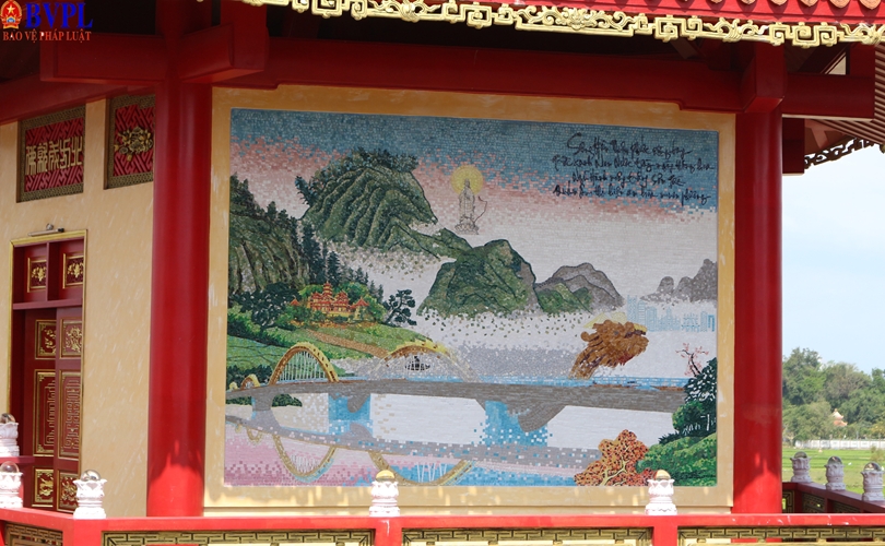 16 bức tranh sứ độc bản được cẩn bằng hàng vạn mảnh sứ màu tại chùa Quán Thế Âm tái hiện sống động những danh lam thắng cảnh nổi tiếng các vùng miền Việt Nam. (Ảnh: LT)