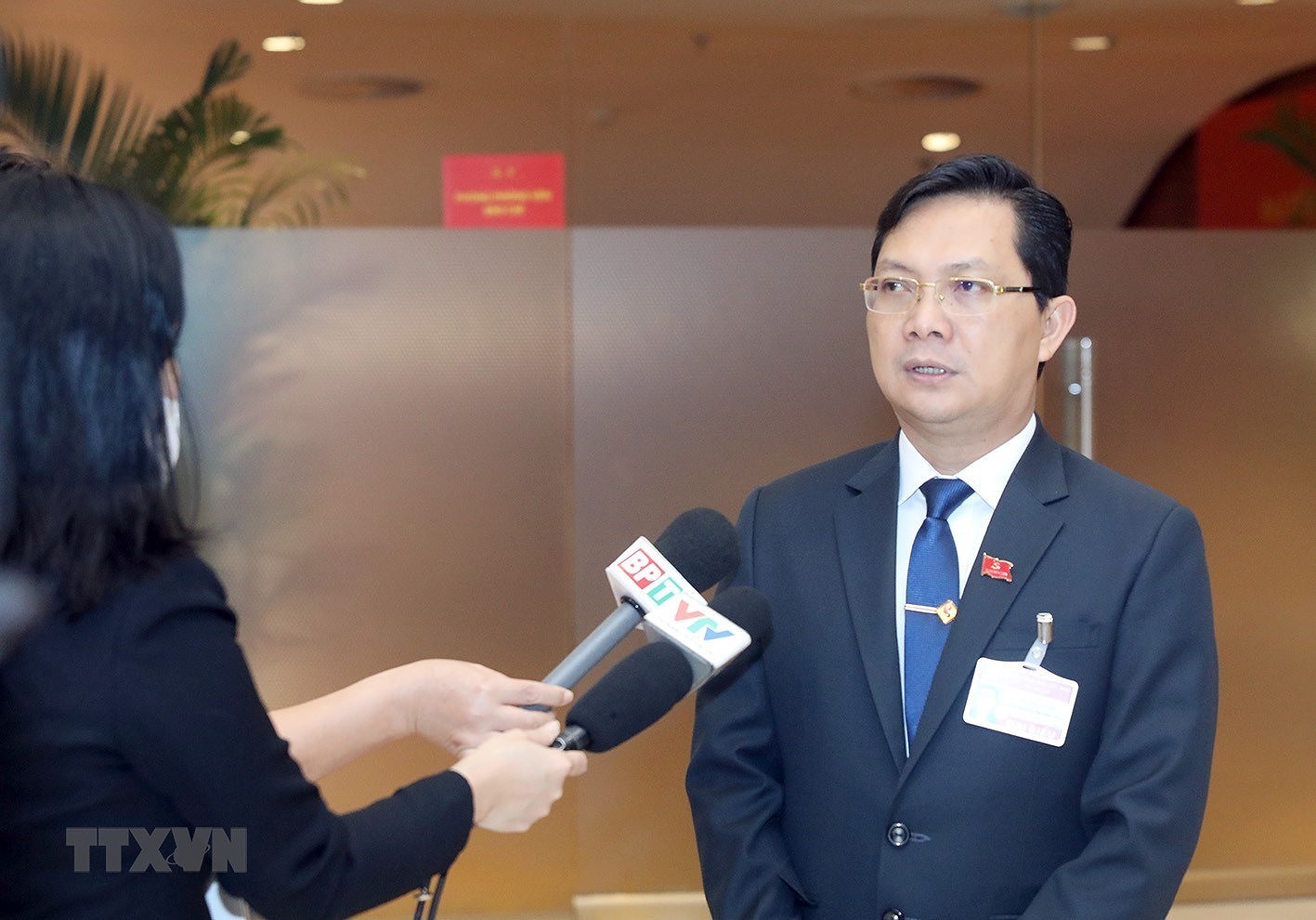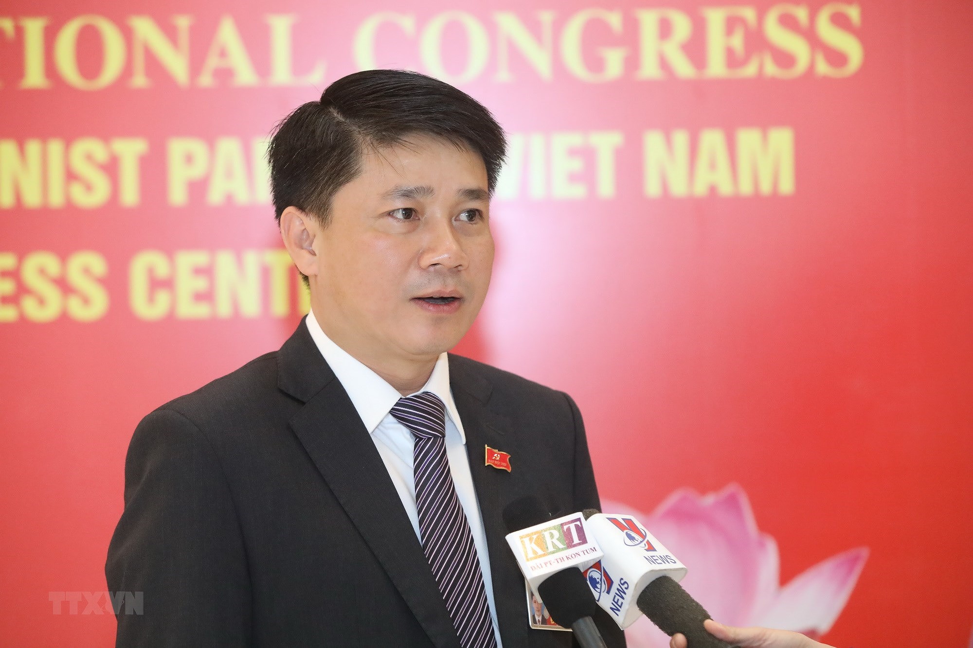 Đại biểu Hà Anh Dũng, Ủy viên Ban Thường vụ, Trưởng ban Tuyên giáo Tỉnh ủy Bình Phước trả lời phỏng vấn. (Ảnh: TTXVN)