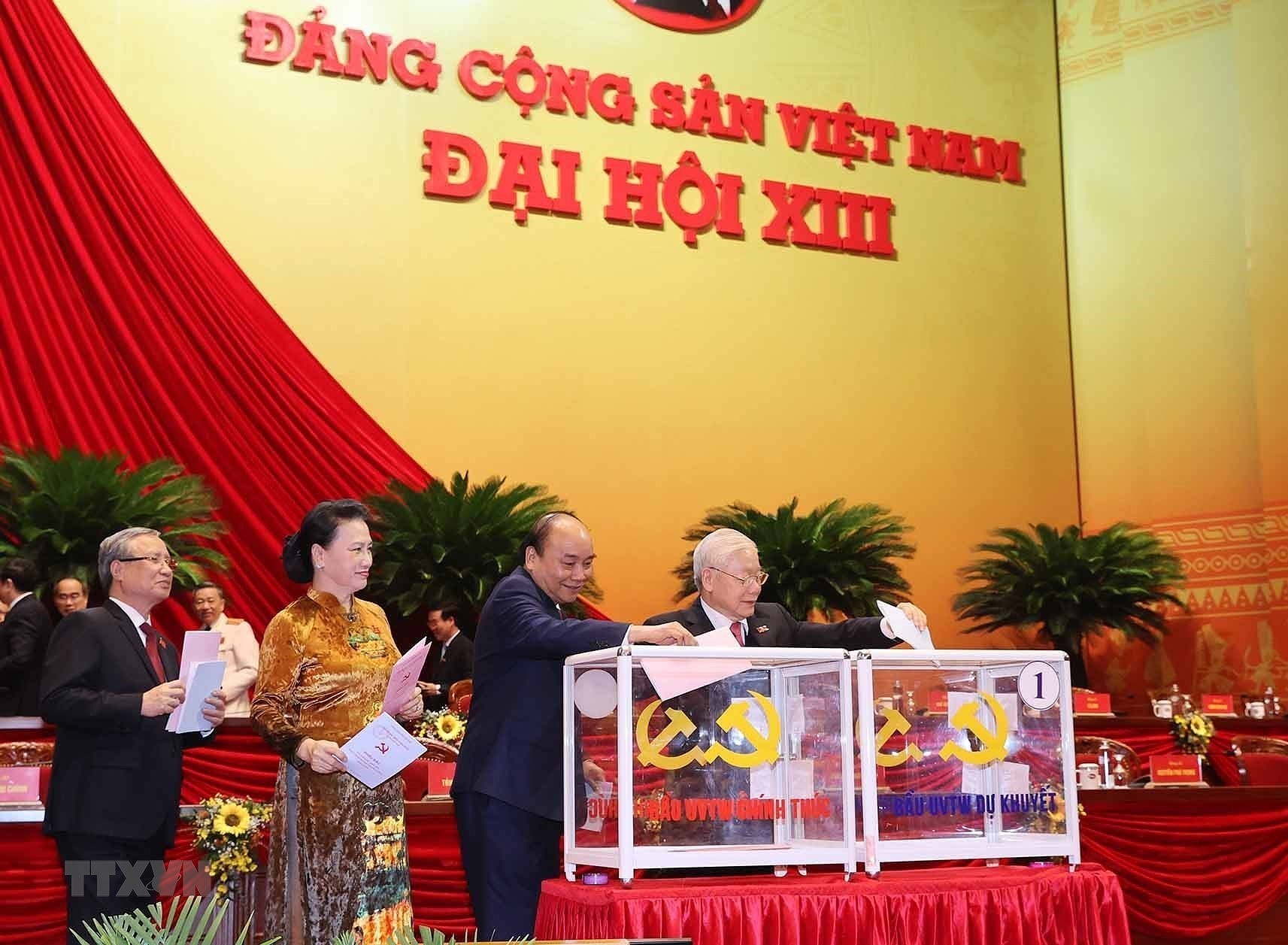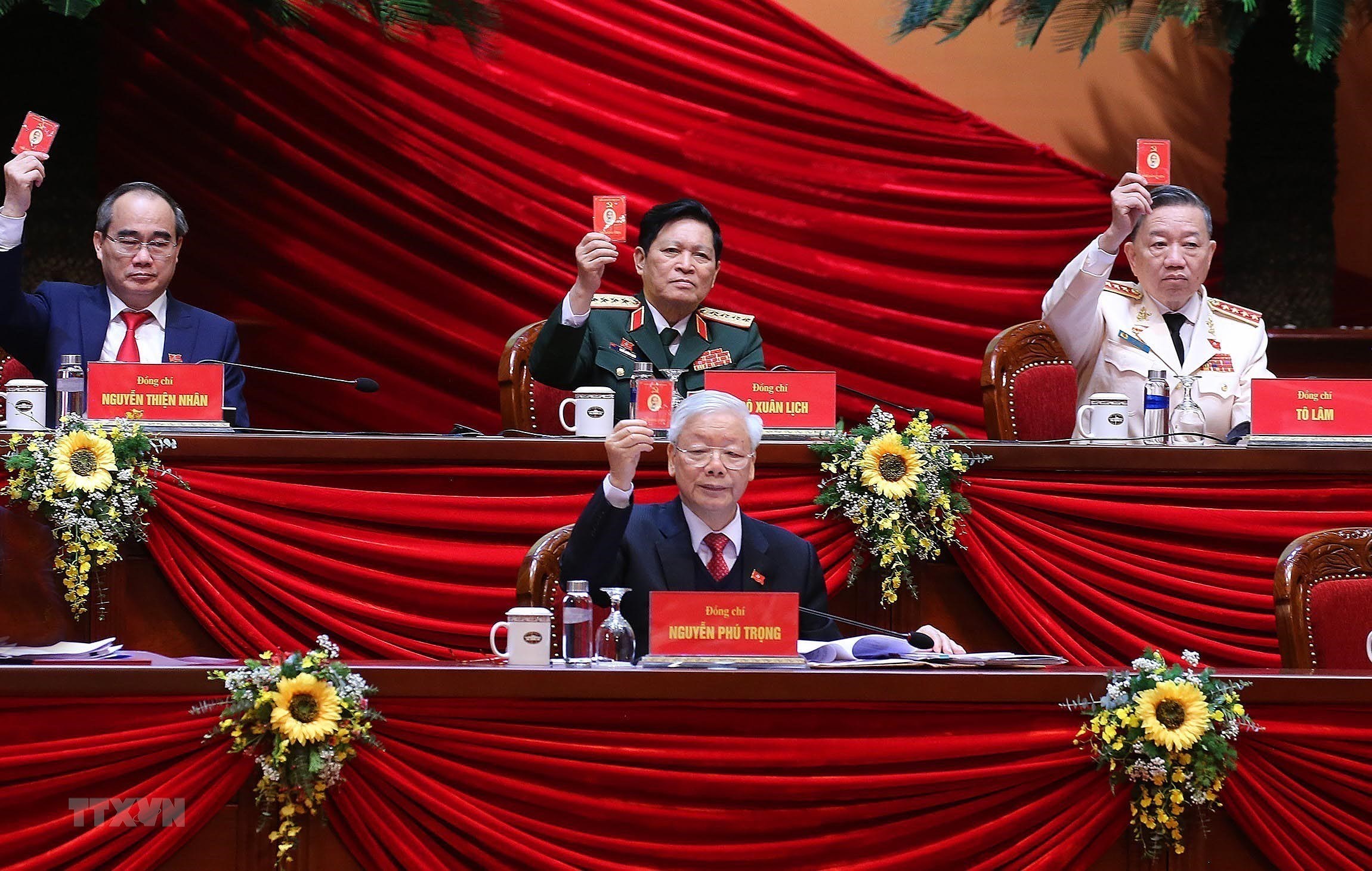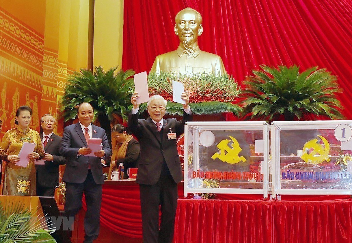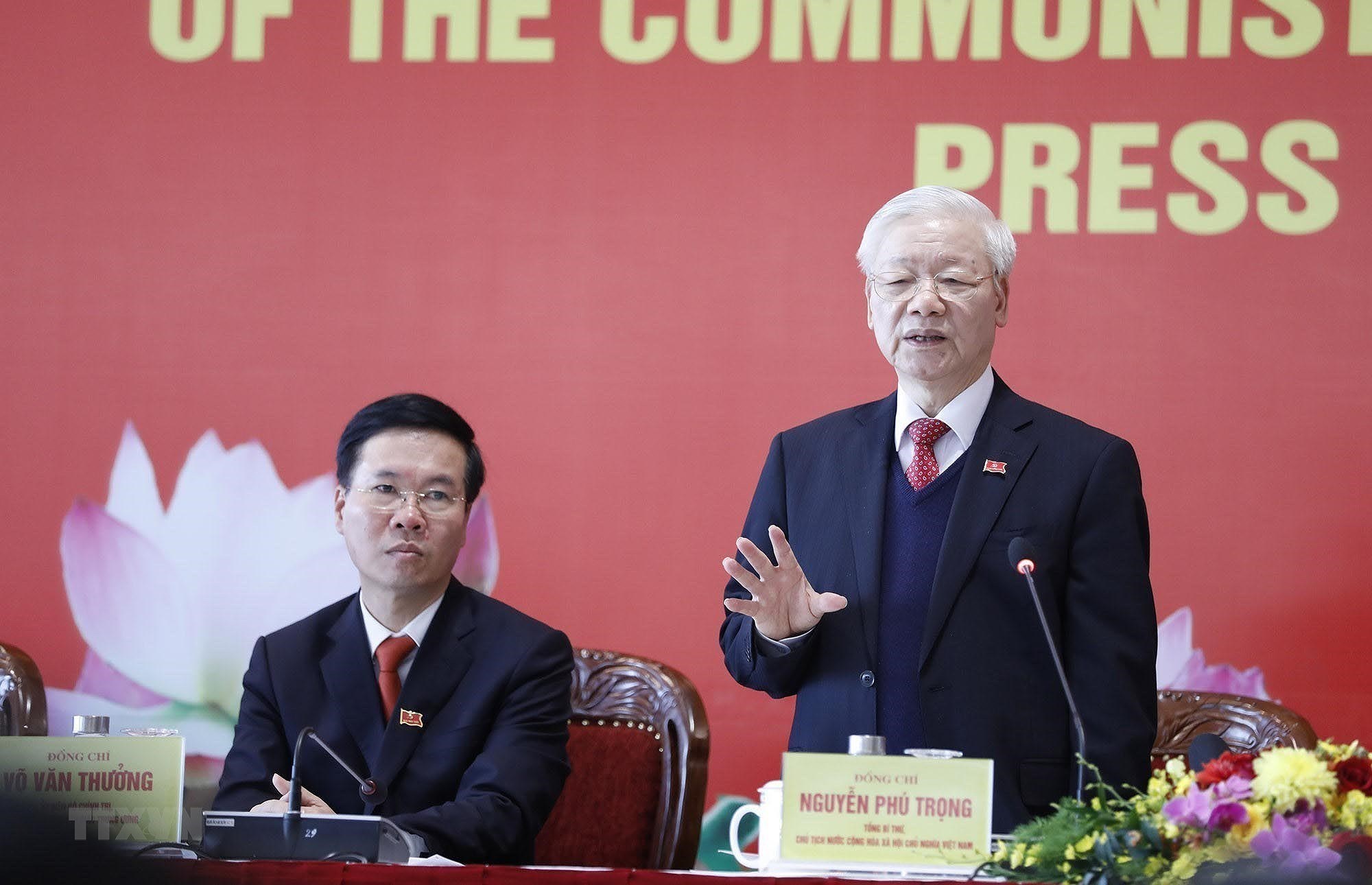 Tại phiên khai mạc, trình bày Báo cáo chính trị của BCHTW Đảng khóa XII về các văn kiện trình Đại hội, đồng chí Nguyễn Phú Trọng, Tổng Bí thư, Chủ tịch nước, Trưởng Tiểu ban Văn kiện nhấn mạnh: Phát huy ý chí, sức mạnh của toàn dân tộc, sự thống nhất của ý Đảng, lòng dân, chúng ta quyết tâm thực hiện thật tốt hệ thống các nhiệm vụ, giải pháp mà các văn kiện trình Đại hội XIII đã đề ra để đưa đất nước ta bước vào một giai đoạn phát triển mới. (Nguồn: TTXVN)
