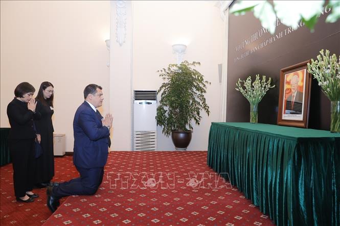 Sáng 25/7/2024, tại Nhà khách Chính phủ, đại sứ các nước, tổ chức quốc tế đến viết sổ tang chia buồn tới Đảng, Nhà nước và nhân dân Việt Nam cùng gia đình đồng chí Nguyễn Phú Trọng, Tổng Bí thư Ban Chấp hành Trung ương Đảng Cộng sản Việt Nam.