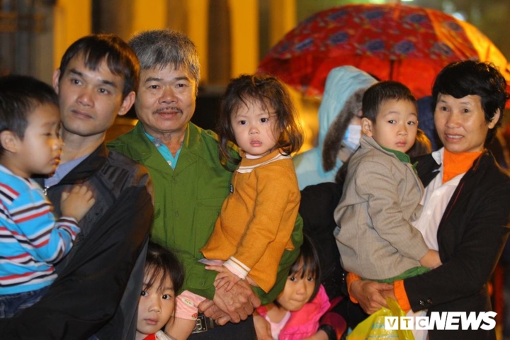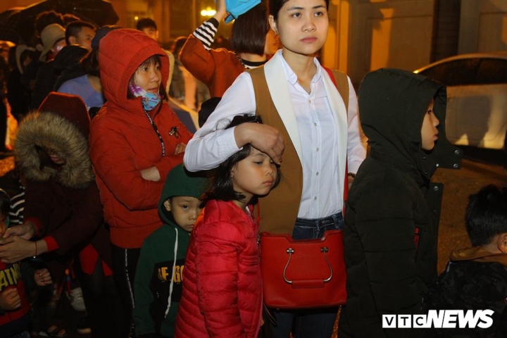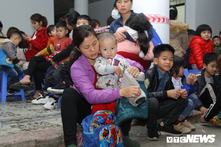 Rất nhiều em nhỏ tỏ ra mệt mỏi khi phải chờ đợi trong mưa rét để chờ lấy số xét nghiệm. Nhiều phụ huynh cho biết họ phải đánh thức con dậy từ 1h, rồi vội vàng bắt xe xuống Hà Nội để xếp hàng lấy số khám bệnh. "Lẽ ra giờ này các cháu vẫn đang ngủ chứ không phải khổ như này", một phụ huynh nói.
