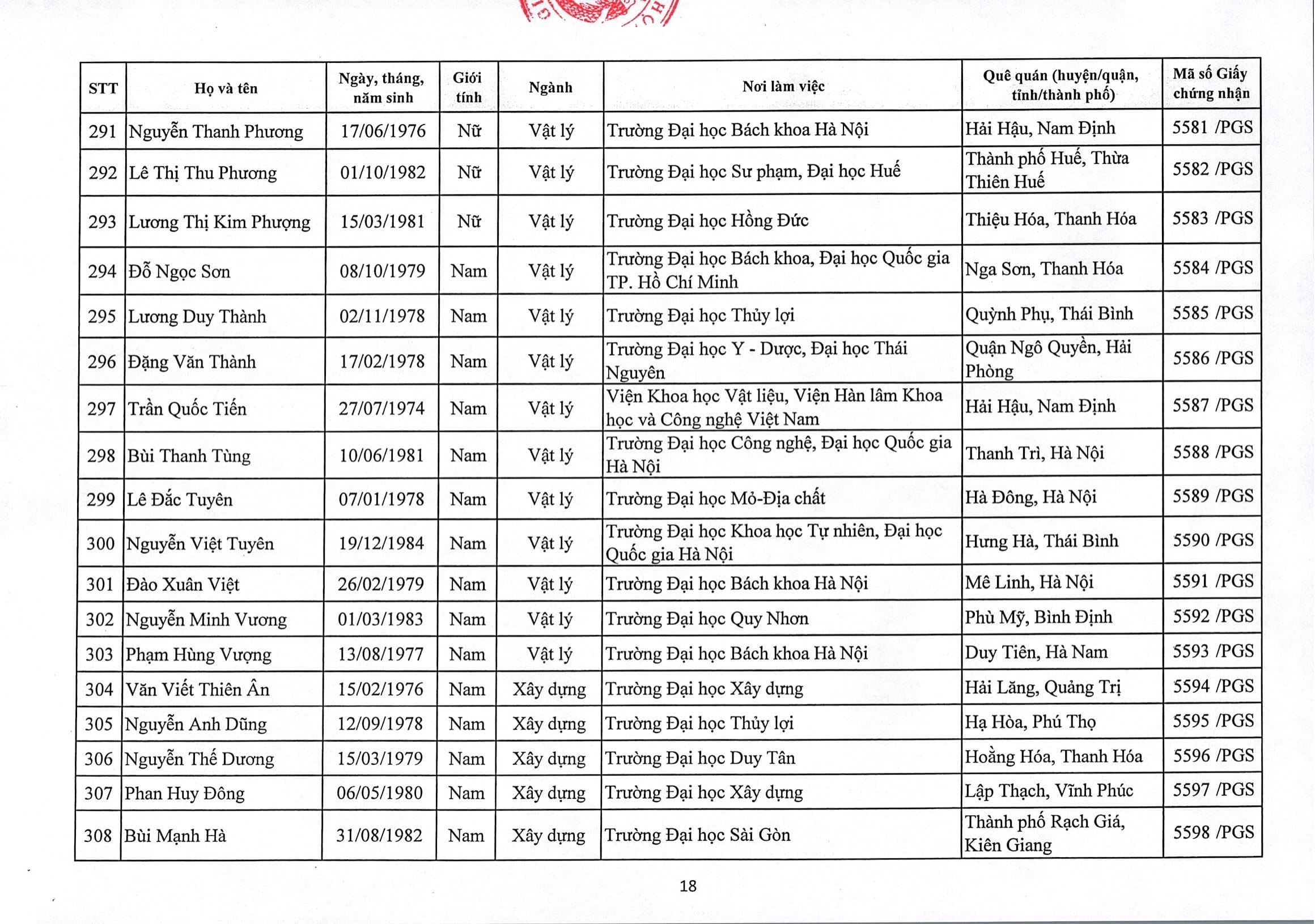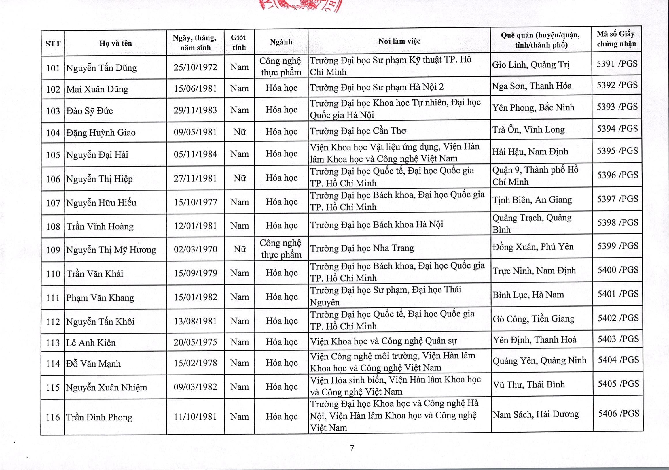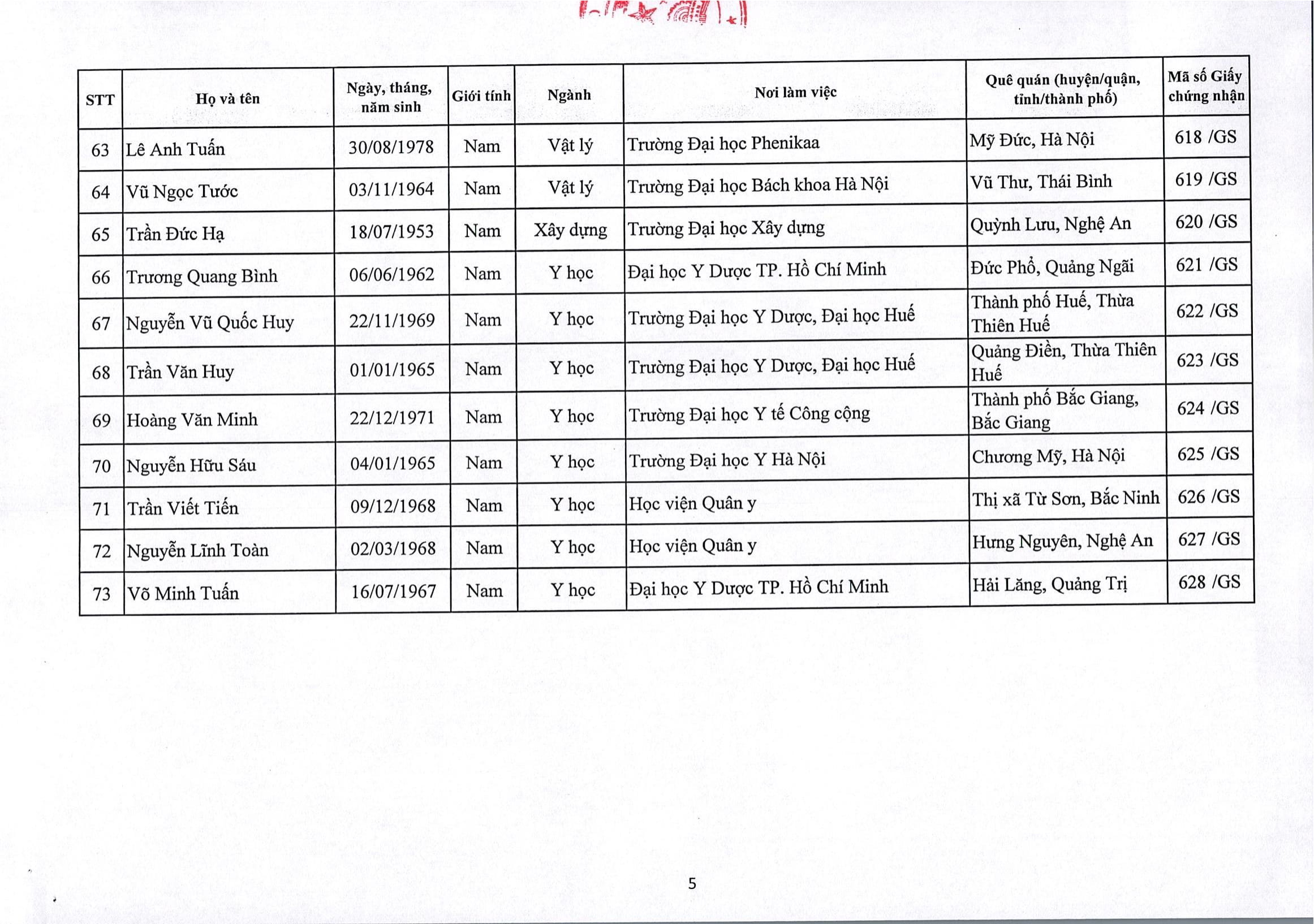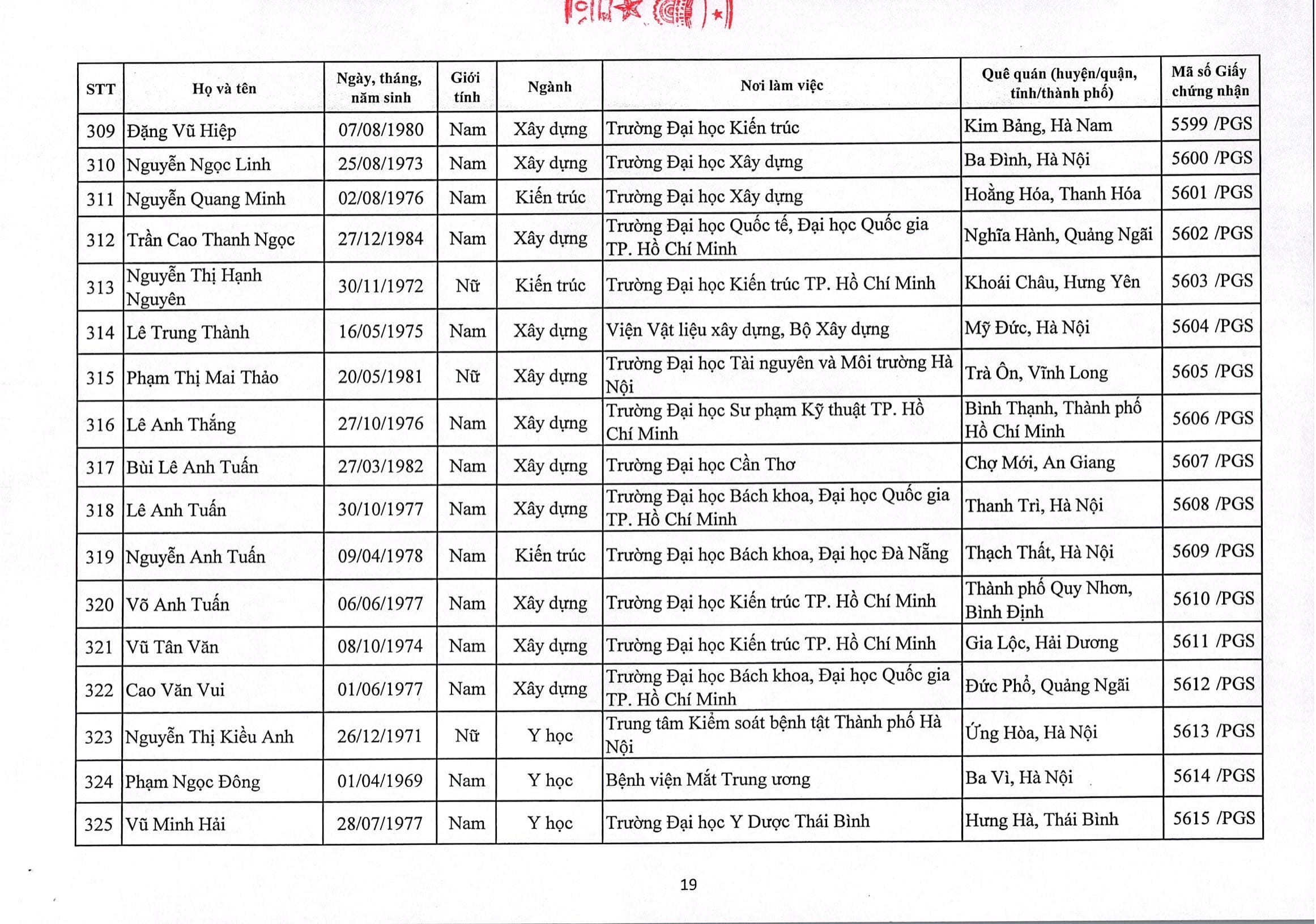 Danh sách các nhà giáo được công nhân đạt tiêu chuẩn chức danh giáo sư năm 2019
