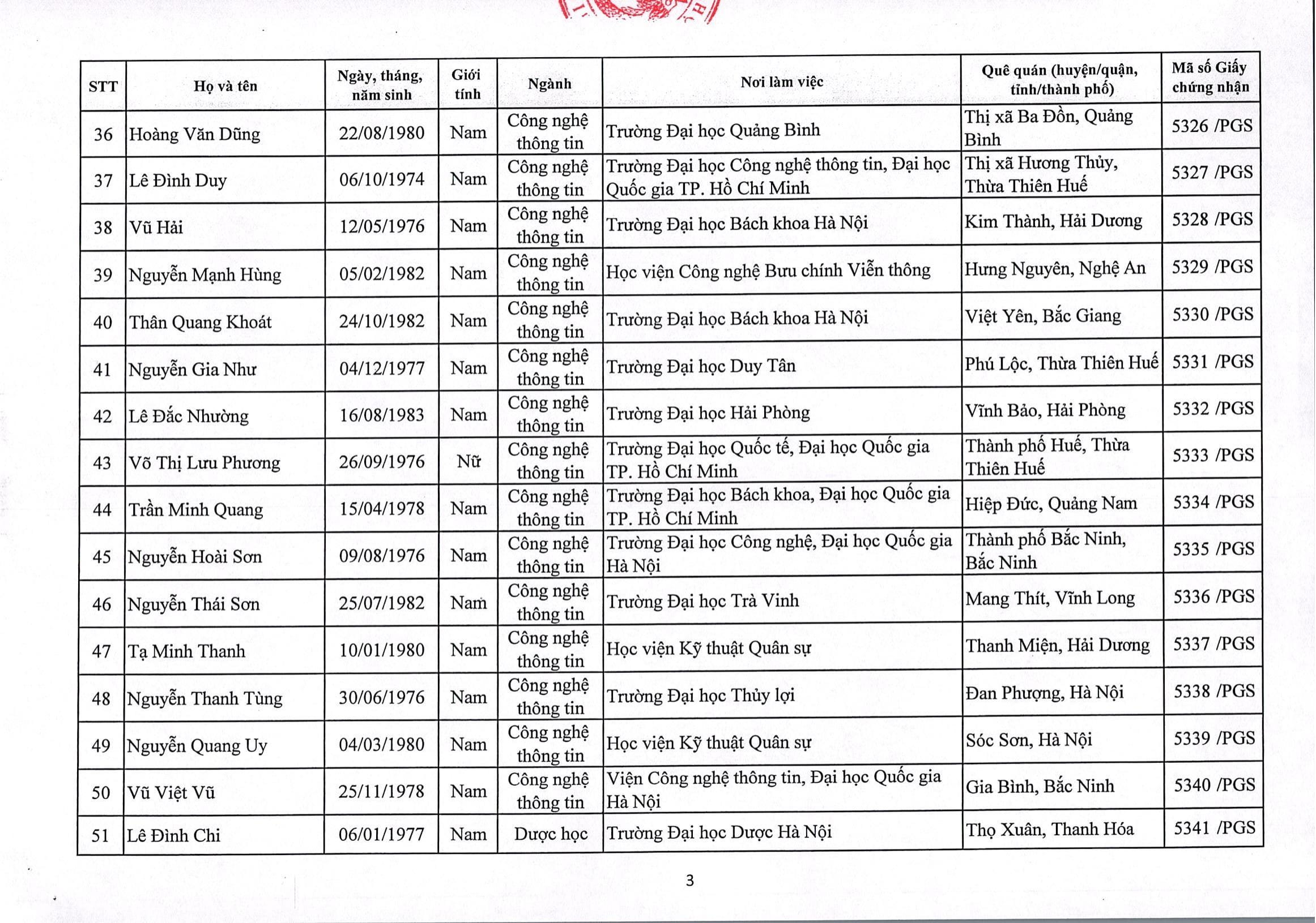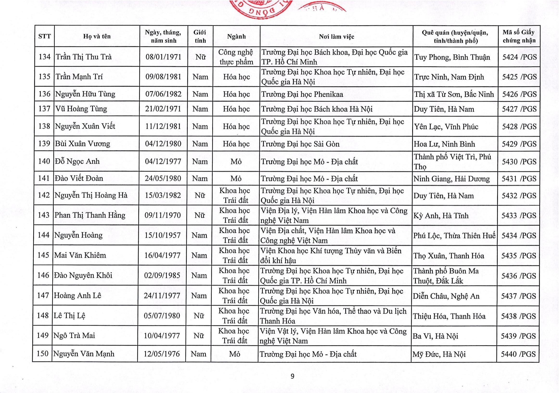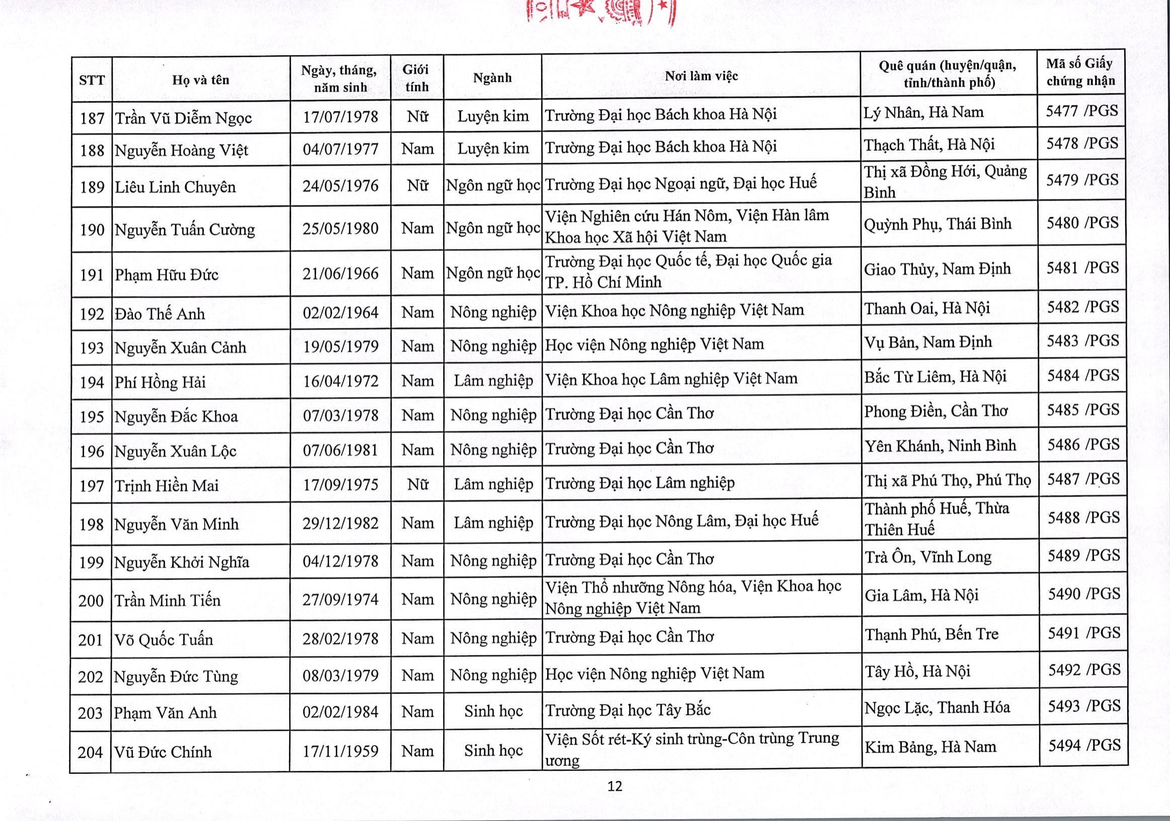 Danh sách các nhà giáo được công nhân đạt tiêu chuẩn chức danh giáo sư năm 2019