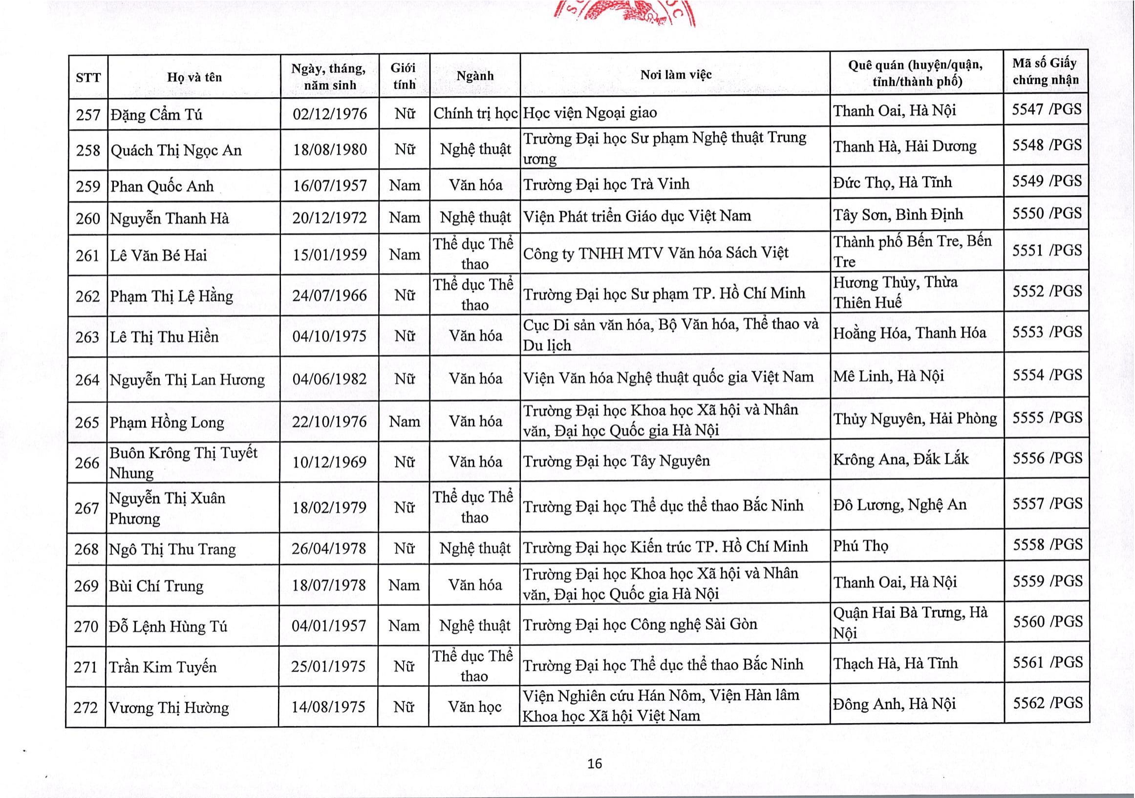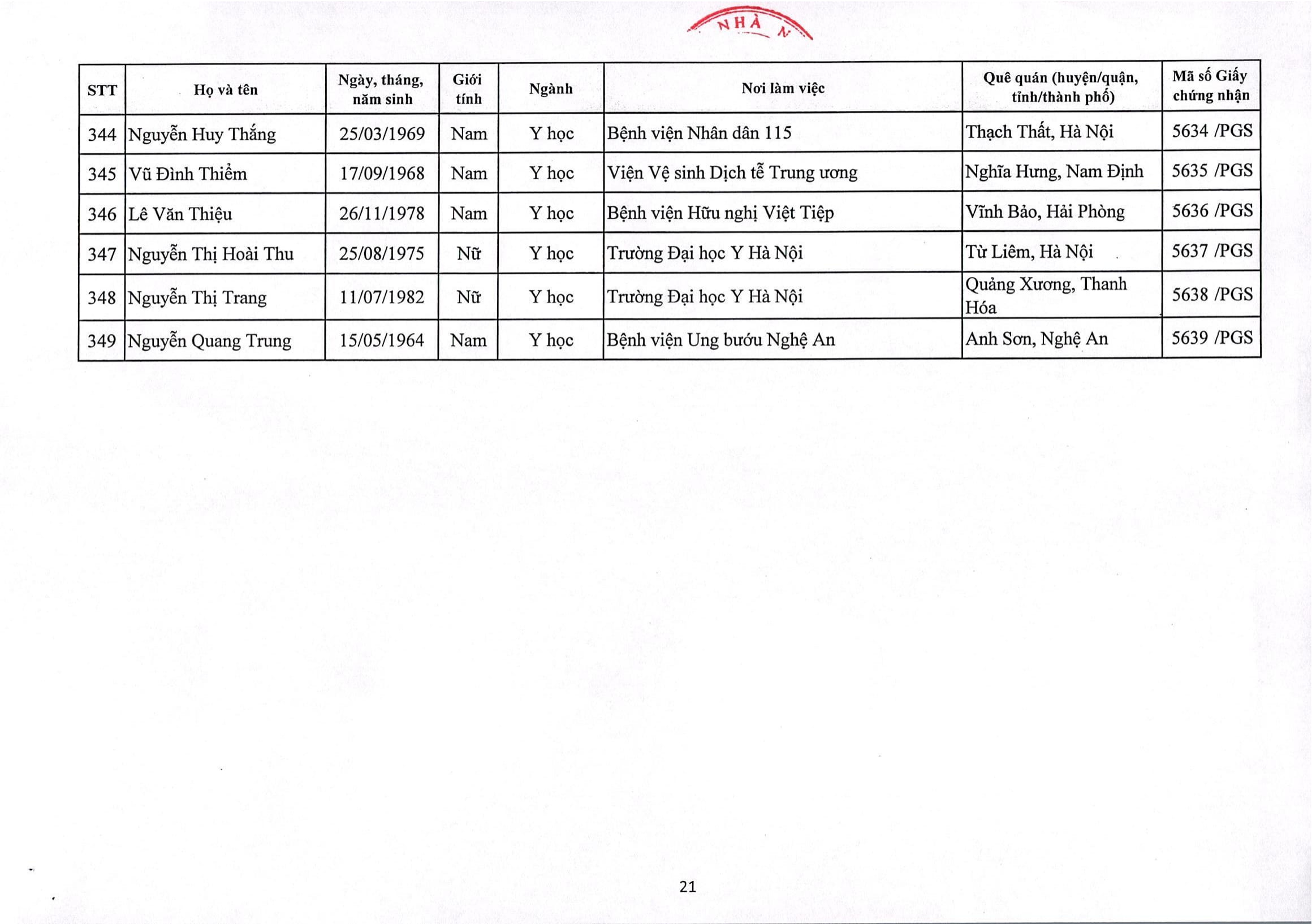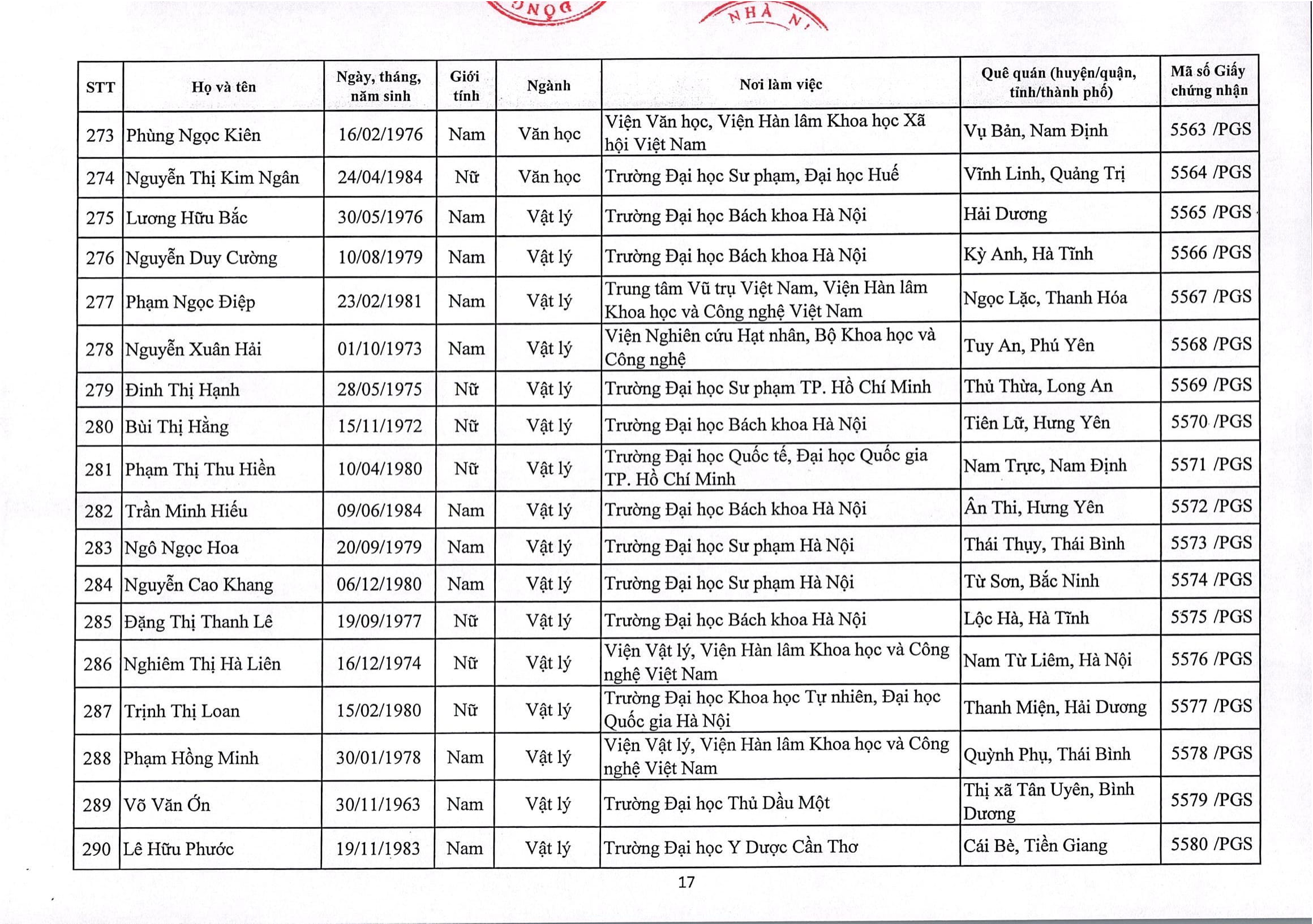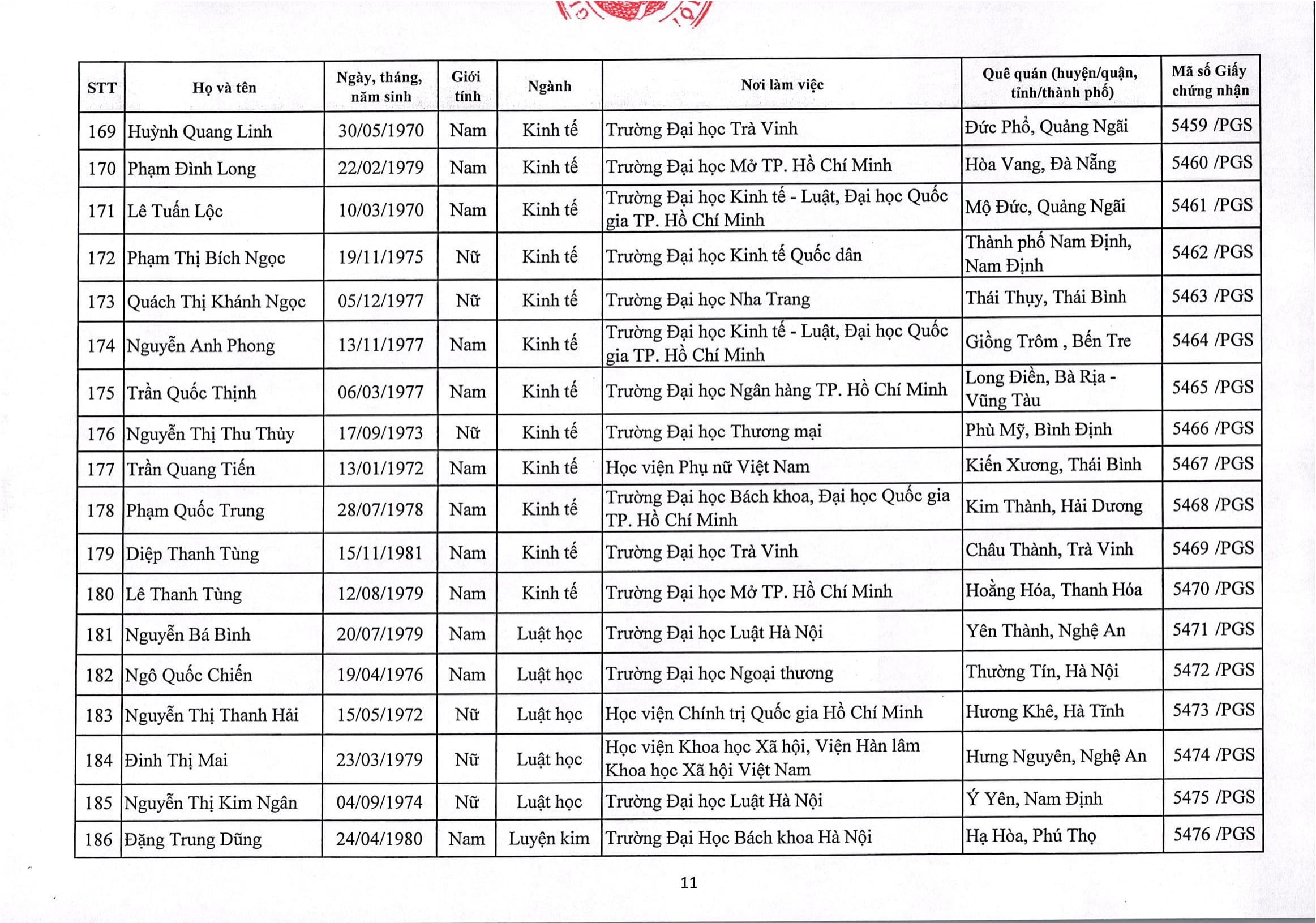 Danh sách các nhà giáo được công nhân đạt tiêu chuẩn chức danh giáo sư năm 2019