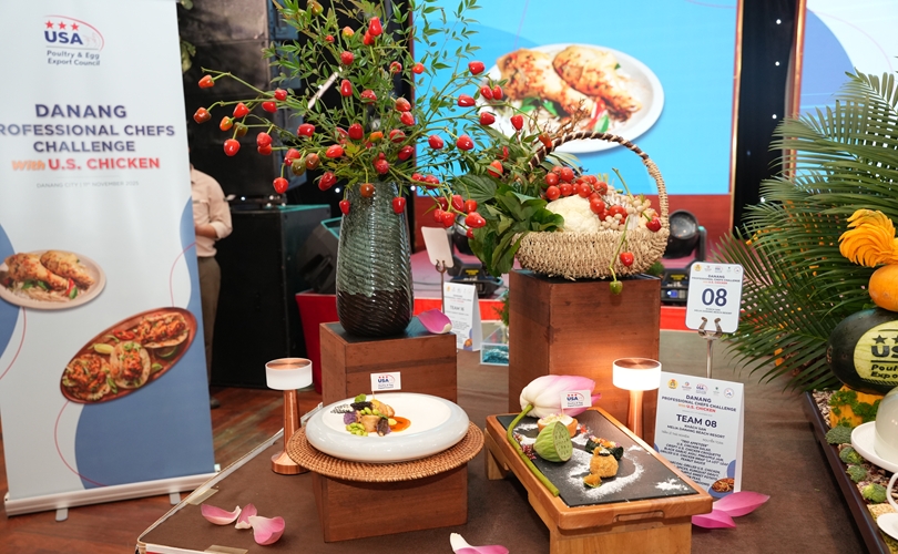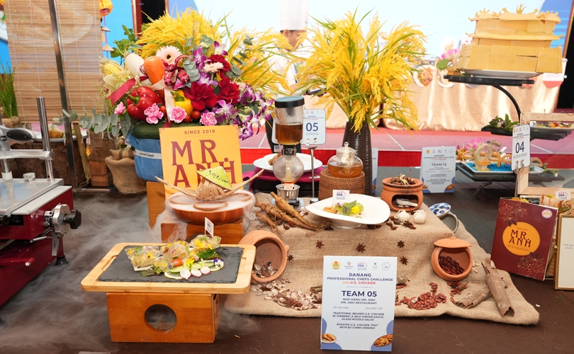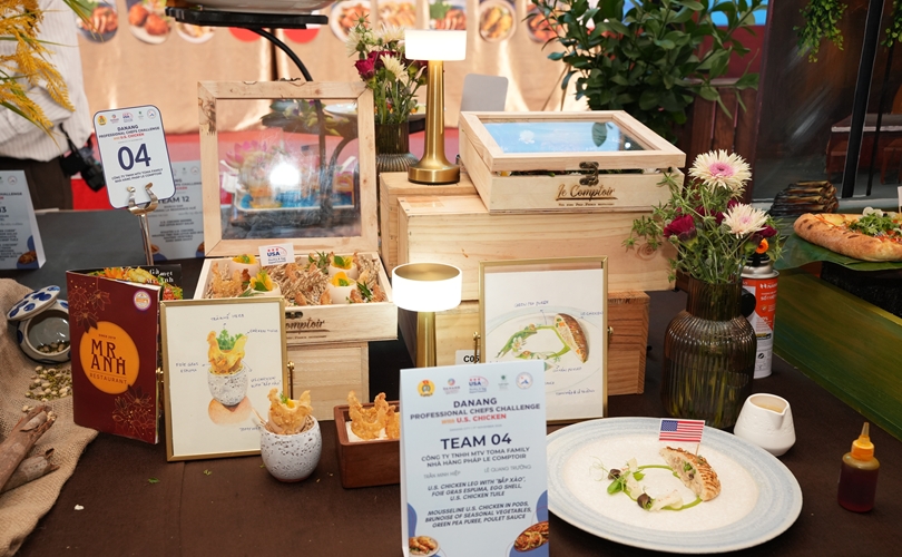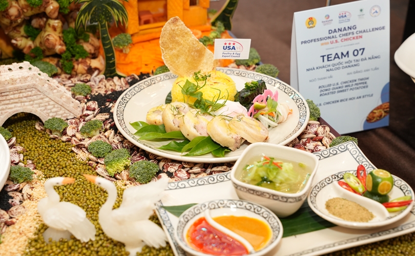 Món U.S. Chicken wrapped in ST25 rice (Gà Mỹ cuộn cơm ST25) đã trở thành "chìa khóa vàng" đưa Đội số 14 - Pullman Danang Beach Resort lên ngôi vị cao nhất tại cuộc thi "Đầu bếp chuyên nghiệp Đà Nẵng 2025".
