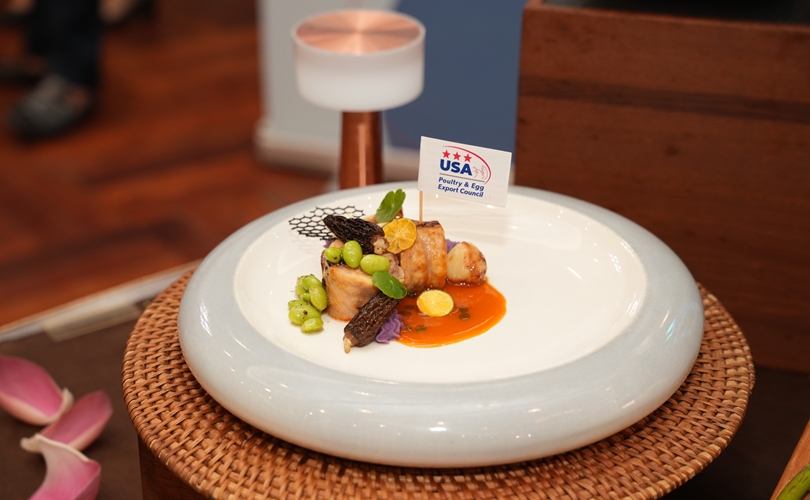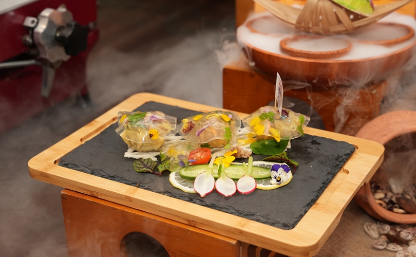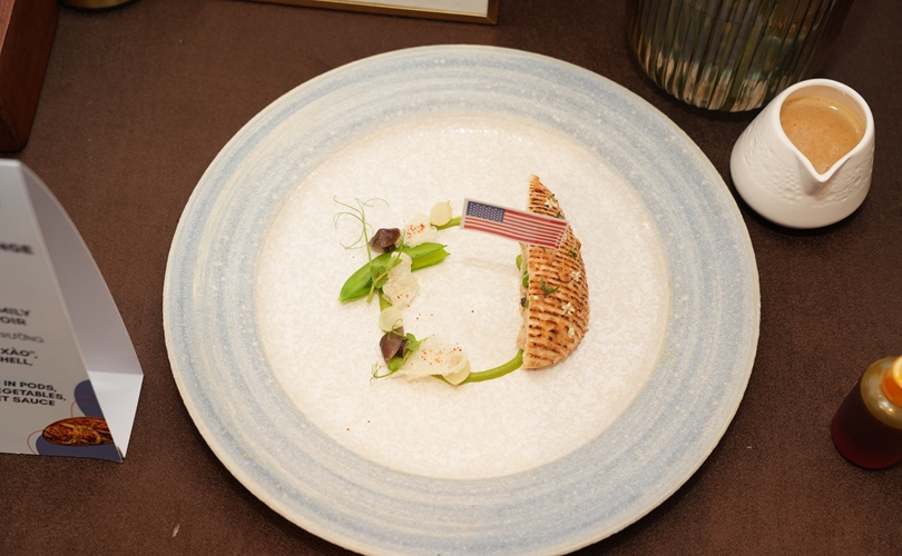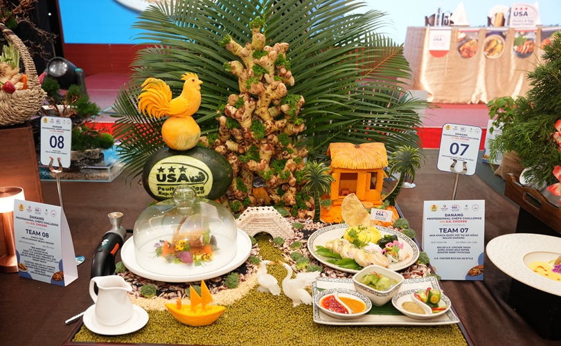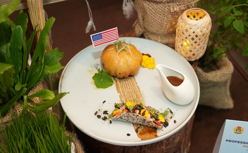 Món U.S. Chicken wrapped in ST25 rice (Gà Mỹ cuộn cơm ST25), món ăn kết hợp với loại gạo ST25 được trình bày ấn tượng, thể hiện tay nghề tinh tế, kỹ thuật chế biến hiện đại, đồng thời tôn vinh bản sắc ẩm thực Việt Nam.