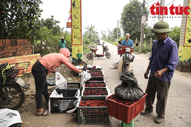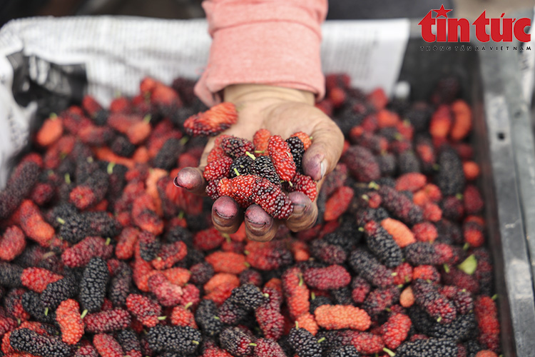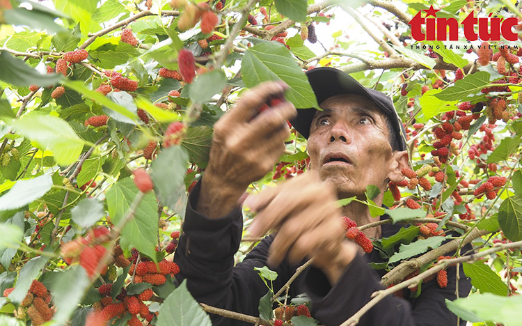 Vào vườn dâu, người dân phải vừa đi vừa cúi bởi tán dâu thấp, cành tua tủa đan xen. Nóng nực, mỏi lưng, mỏi gối, nhưng ai cũng vui vì năm nay dâu được mùa, cành nào cũng sai trĩu quả. Trung bình mỗi ngày, một người thu hoạch dâu hái liên tục 8 tiếng được khoảng 30 – 40 kg.