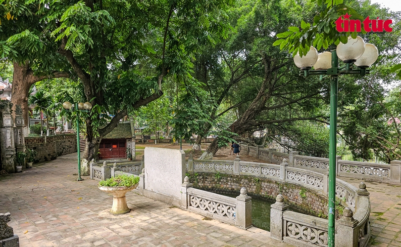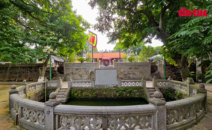 Trước sân giữa lối chính là một giếng nước hình bán nguyệt.
