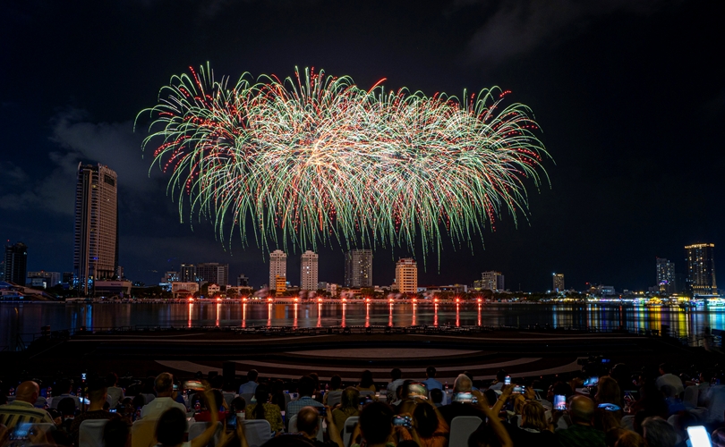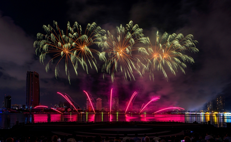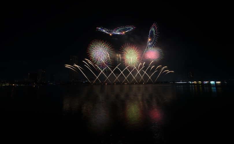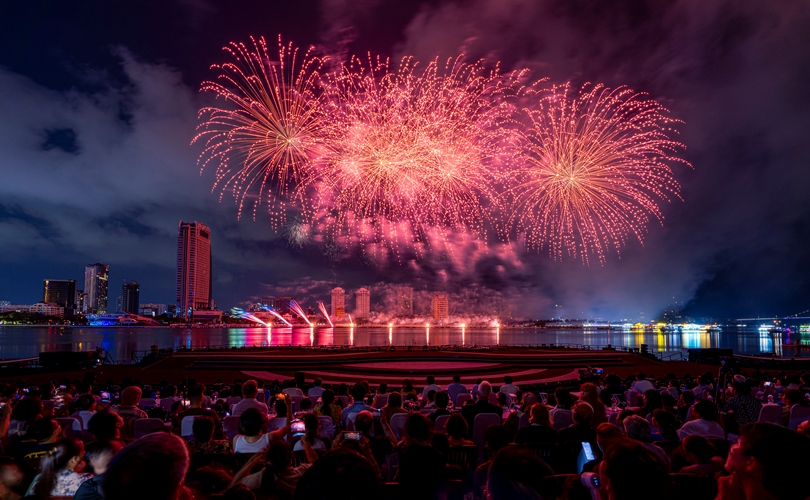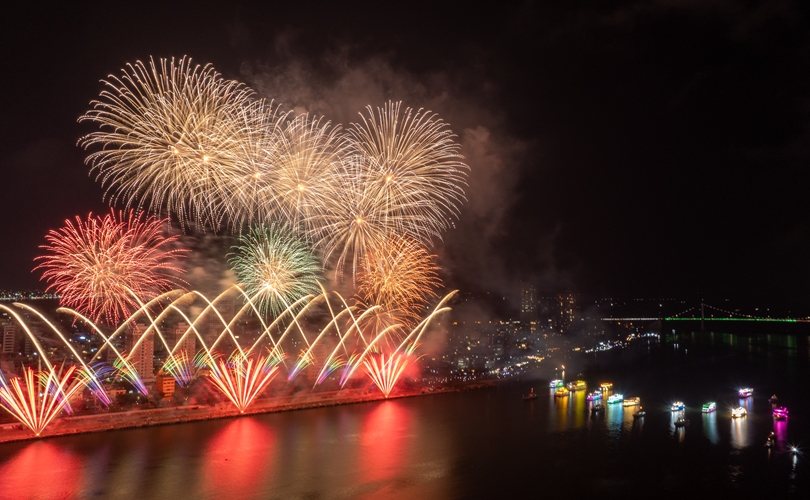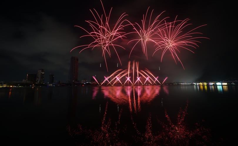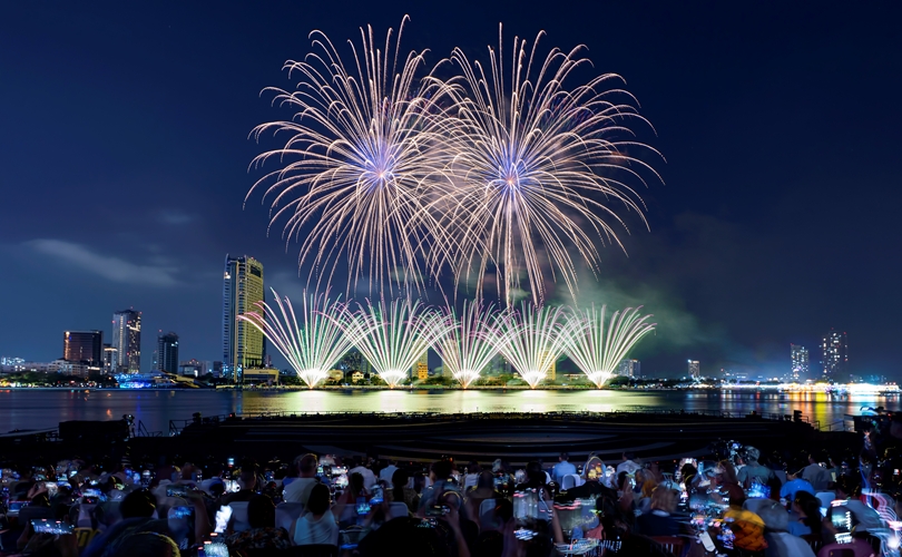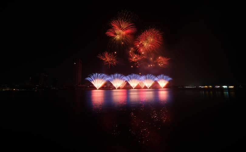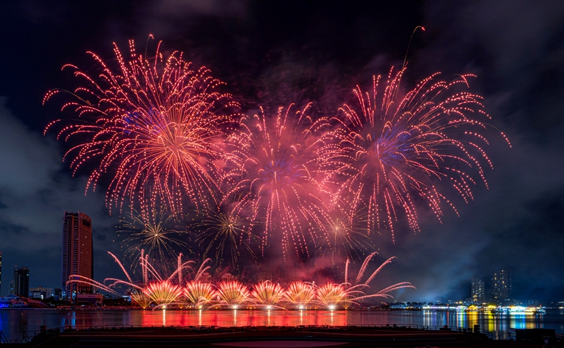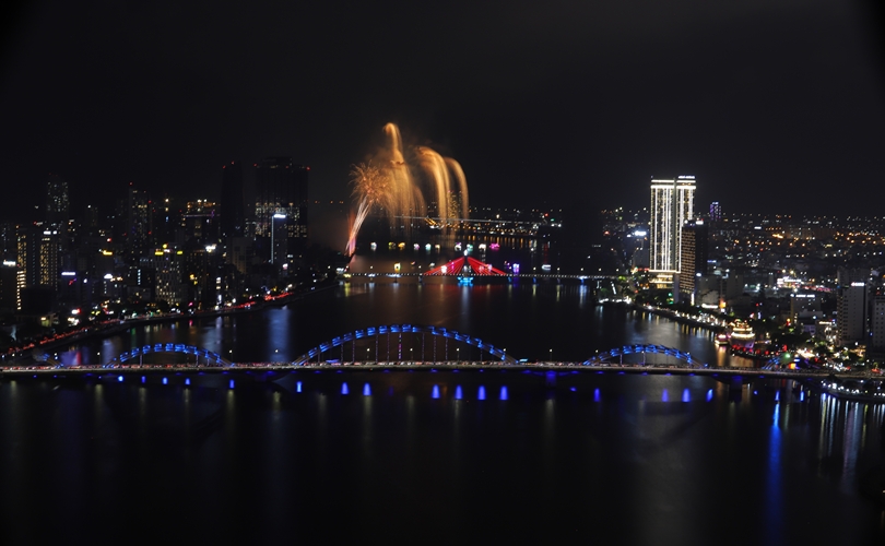 Mở đầu rộn ràng, những chùm pháo đa sắc bùng nổ theo nhịp nhạc sôi động, vẽ lên bầu trời những gam màu sống động và hiện đại, khắc họa một Đà Nẵng trẻ trung, bứt phá không ngừng.