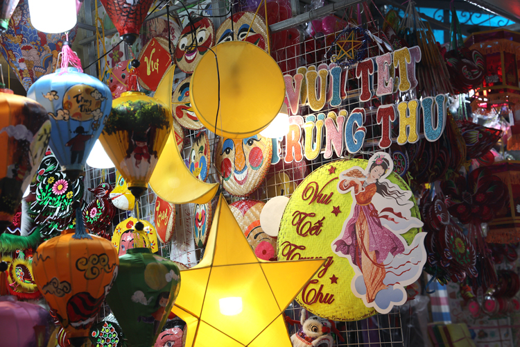 Đèn lồng, đèn ông sao, đồ chơi Trung thu... được các cửa hàng trưng bày bắt mắt.