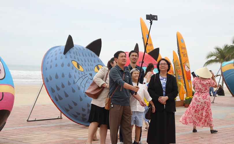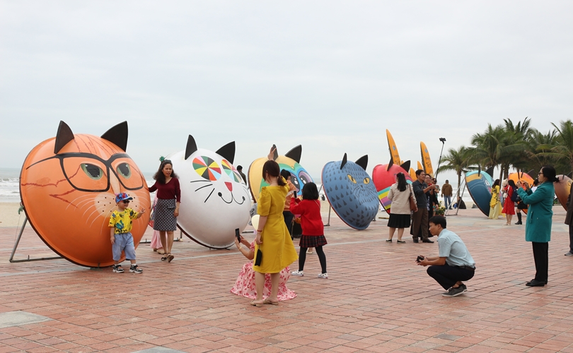 Tết Quý Mão 2023, Đà Nẵng đã đưa vào sử dụng hàng loạt mô hình check-in tạo điểm nhấn du lịch cho thành phố trong dịp Tết Nguyên đán. Đặc biệt, hình ảnh linh vật mèo trang trí trên thuyền thúng được trưng bày tại các bãi biển du lịch của thành phố khiến du khách trầm trồ vì sự độc đáo. (Ảnh:LT)