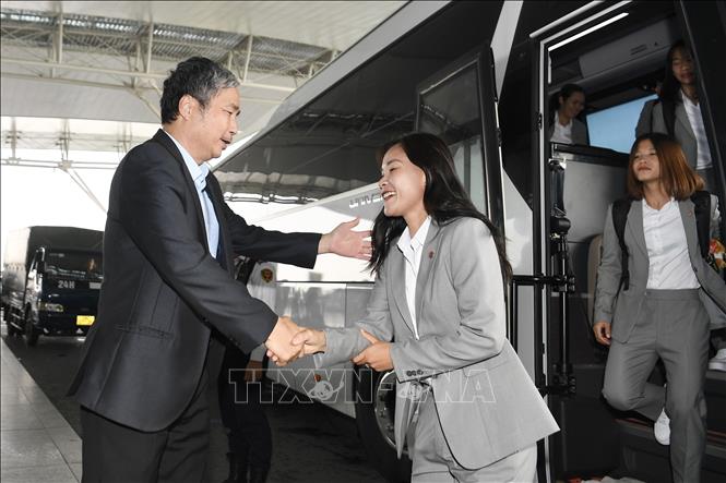 Thành viên đội tuyển nữ quốc gia Việt Nam trước giờ xuất phát.