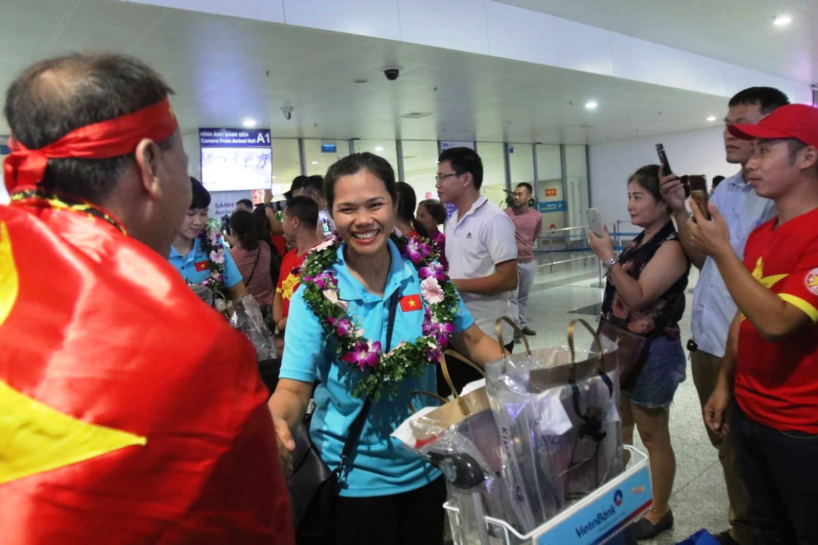 Đông đảo người hâm mộ chờ đón các nữ tuyển thủ về nước trong vinh quang.