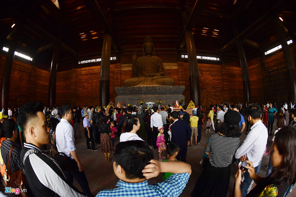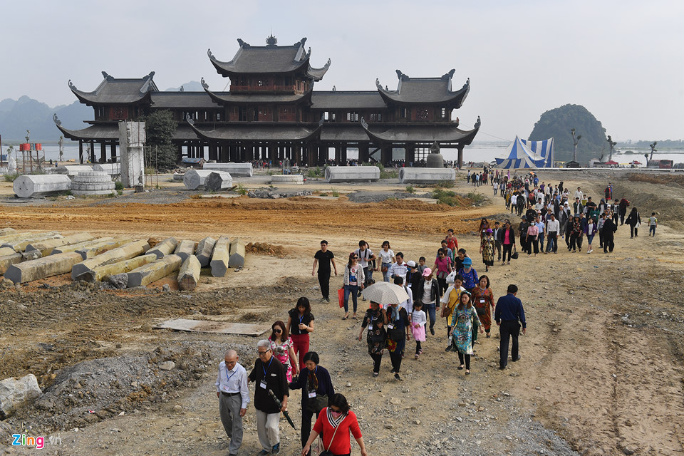 Nguyễn Phương Anh (áo măng tô, đến từ Thái Bình) cho biết biết được thông tin ngôi chùa đang xây có quy mô lớn nên tò mò đi cùng gia đình đến chơi. Trước khi đến đây, cô gái này đã đi chùa Keo. "Sau khi thăm chùa Tam Chúc xong, cả nhà em sẽ đi chùa Bái Đính ở Ninh Bình", Phương Anh tiết lộ.