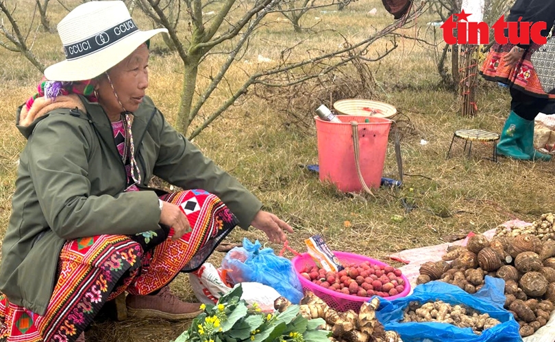 Người dân bản địa cũng bày bán một số loại rau, củ, hoa quả..