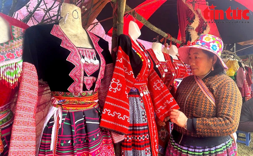 Tại vườn mận có dịch vụ cho thuê trang phục của người Mông, với đa dạng kiểu dáng.