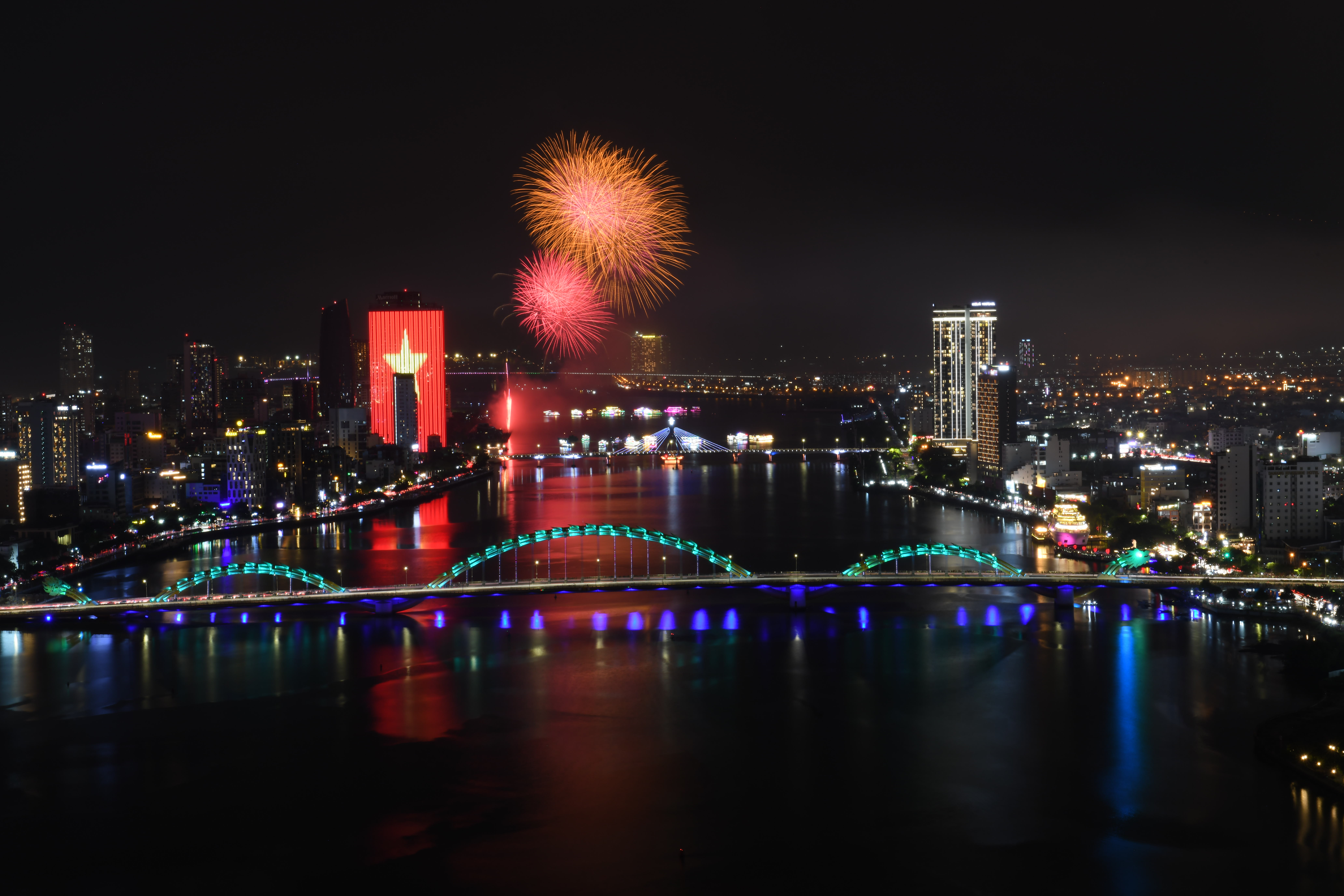 Màn pháo hoa được chụp từ cầu Trần Thị Lý (Đà Nẵng).