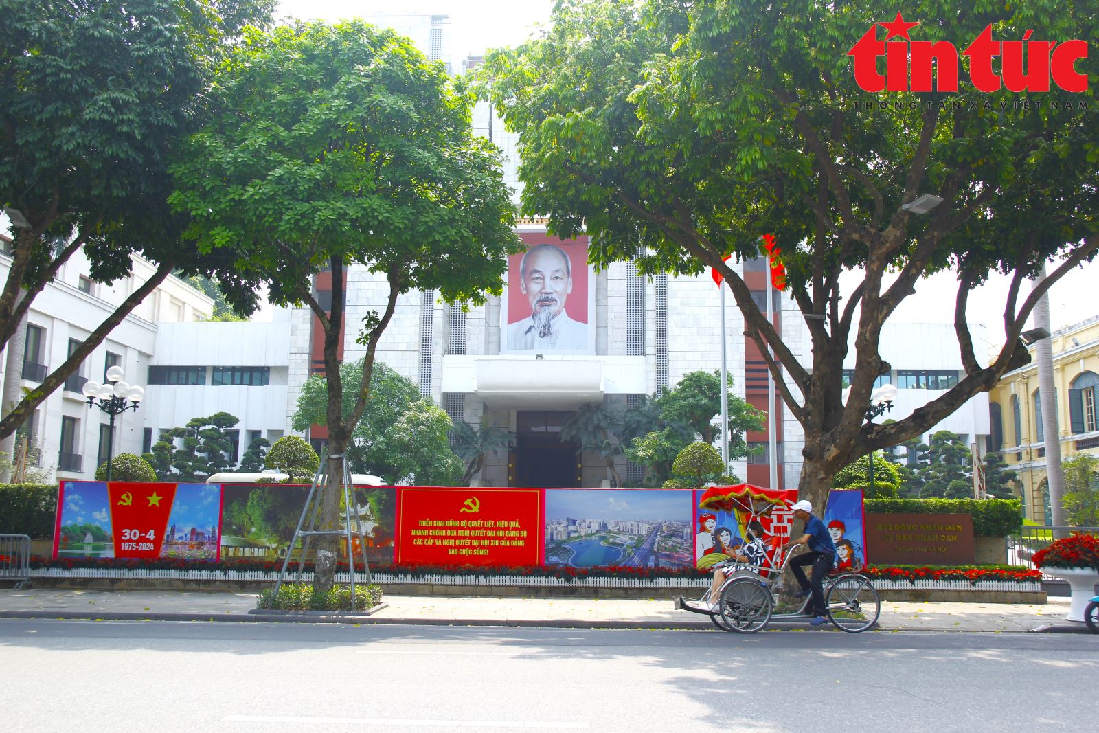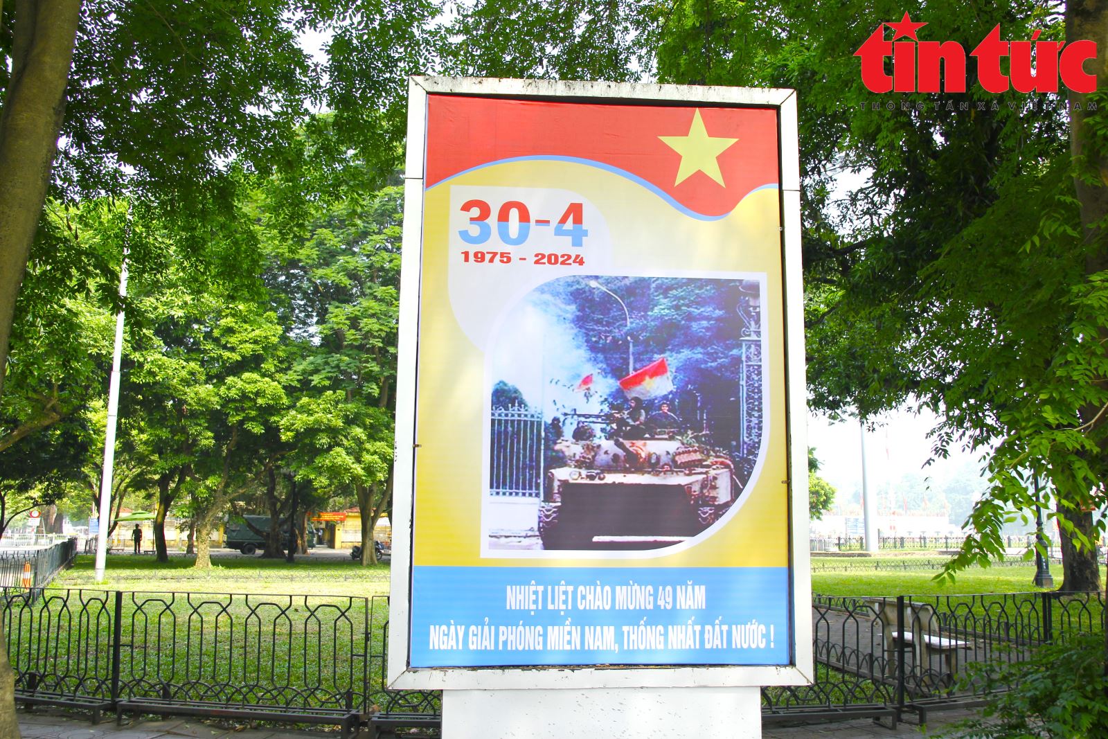 Những ngày này, tại Lăng Chủ tịch Hồ Chí Minh và nhiều tuyến phố, trụ sở cơ quan ở Thủ đô được trang hoàng cờ Tổ quốc, pano, áp phích... để chào mừng 49 năm Ngày Giải phóng miền Nam, thống nhất đất nước, 70 năm Chiến thắng Điện Biên Phủ và Ngày Quốc tế Lao động.
