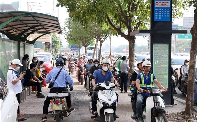 Đường Phạm Văn Đồng đoạn trước cổng trường Đại học Quốc gia ùn tắc, phương tiện di chuyển khó khăn (ảnh chúp lúc 7h20). Ảnh: Quốc Khánh/TTXVN