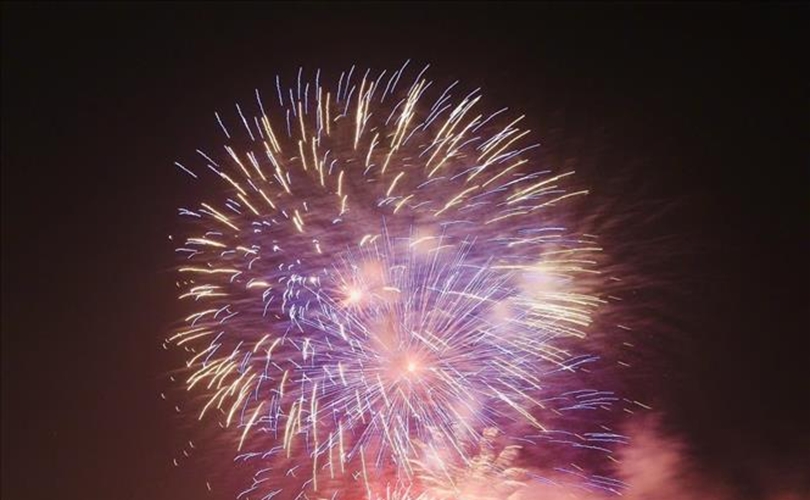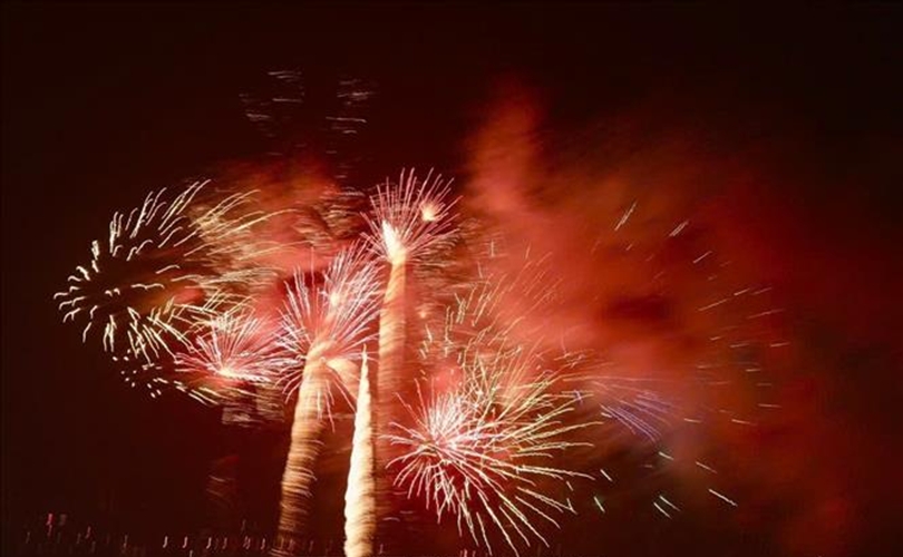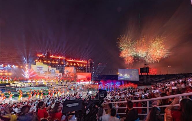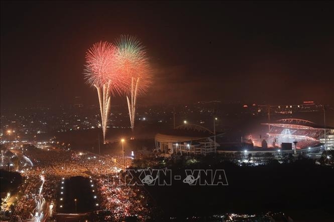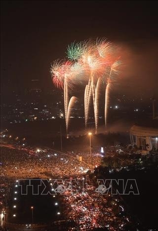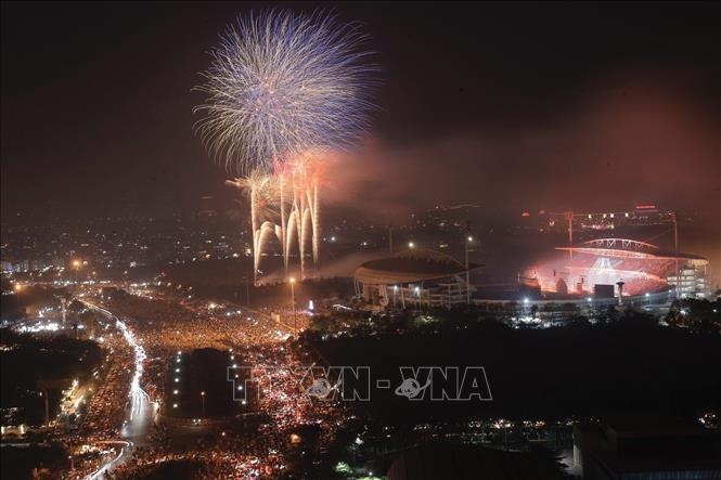 Màn bắn pháo hoa chào mừng. Ảnh: Thành Phương/TTXVN