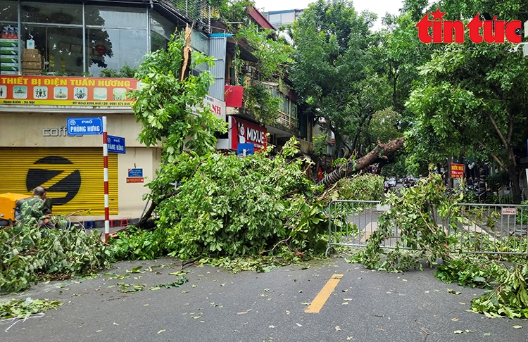 Trên phố Hàng Bông - Phùng Hưng cây đổ ngang lòng đường.