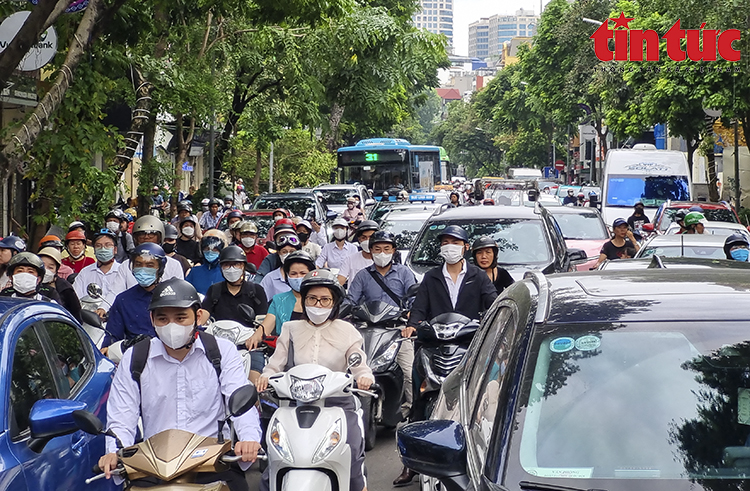Sáng 9/9, các phương tiện tham gia giao thông Hà Nội di chuyển khó khăn do hậu quả của bão số 3. Nhiều cây gãy đổ chưa kip di chuyển.