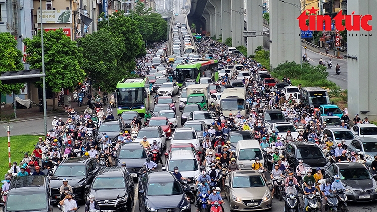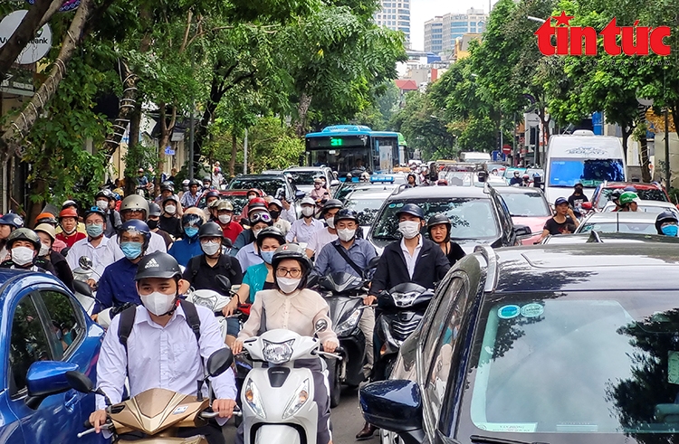 Phố Lạc Trung vào giờ cao điểm các phương tiện phải di chuyển nhích từng centimet.