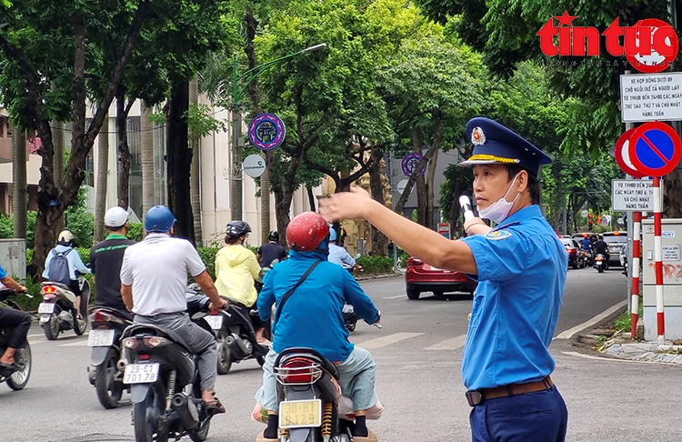 Lực lượng chức năng phân luồng tránh ùn tắc giao thông.