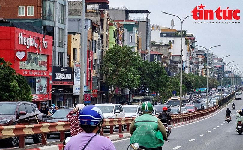Đường Hoàng Quốc Việt người dân di chuyển chậm.