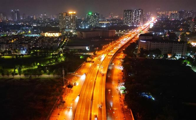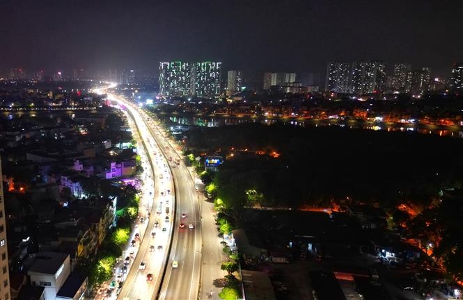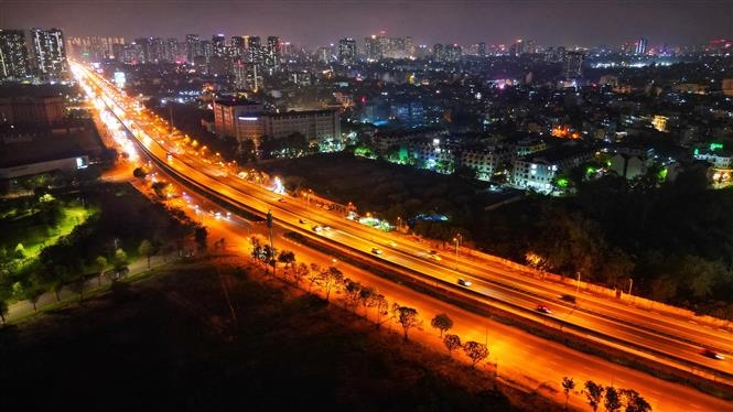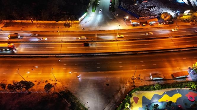 Tuyến đường Vành đai 3 đoạn Nguyễn Xiển thông thoáng lúc tối 3/5 (ảnh chụp lúc 21 giờ).