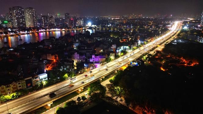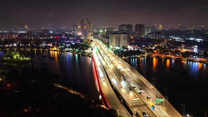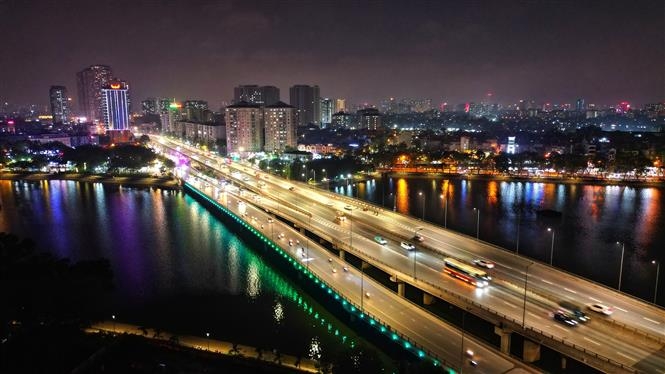 Hướng đi cầu Thanh Trì thông thoáng cả trên lẫn dưới trên tuyến đường VàẢnh: Tuấn Anh - TTXVN