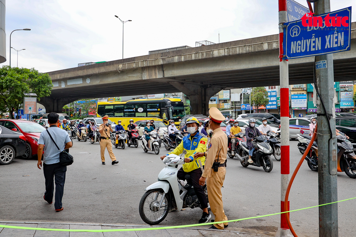 CSGT Hà Nội ra quân xử lý xe máy đi lên vỉa hè tại ngã tư Khuất Duy Tiến – Nguyễn Trãi.