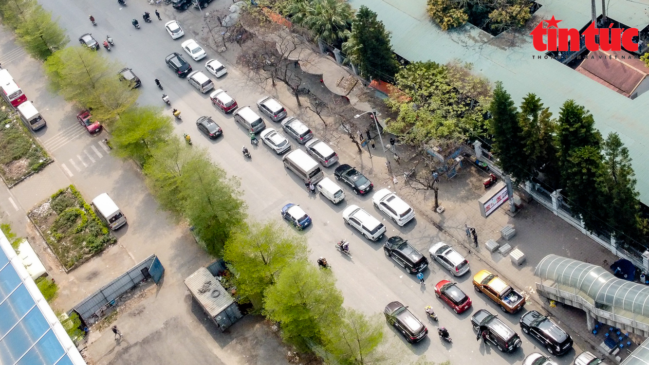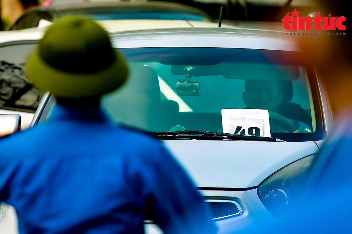 Cảnh hỗn loạn trước trung tâm đăng kiểm xe ở Cầu Giấy, Hà Nội.