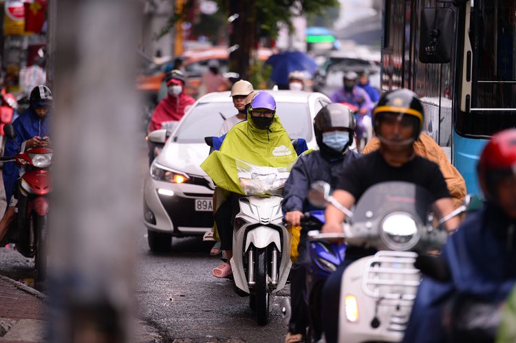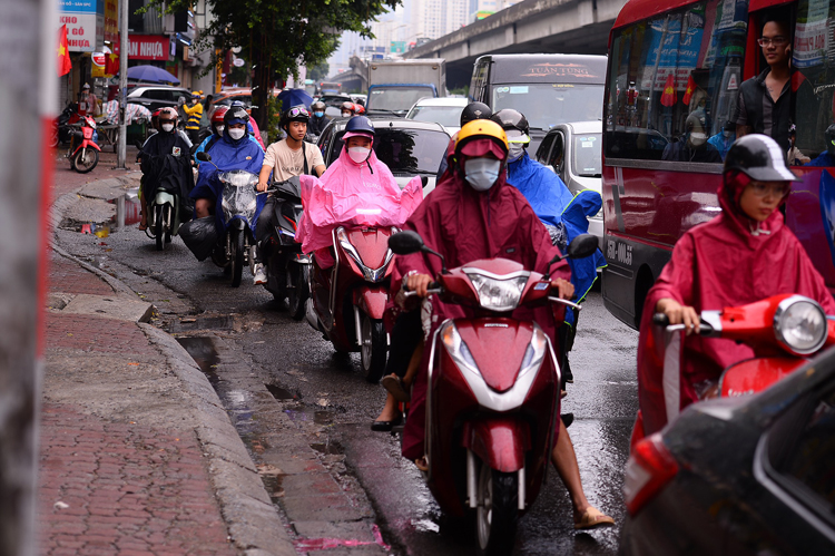 Sáng 1/9, cơn mưa to kéo dài khiến người dân khó khăn trong việc di chuyển khỏi thành phố. Nhiều tuyến đường tại TP Hà Nội rơi vào tình trạng ùn tắc, các phương tiện di chuyển chậm.