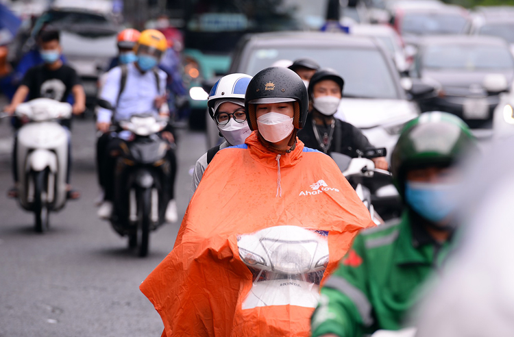 Trời Hà Nội có mưa lớn khiến việc đi lại khó khăn.