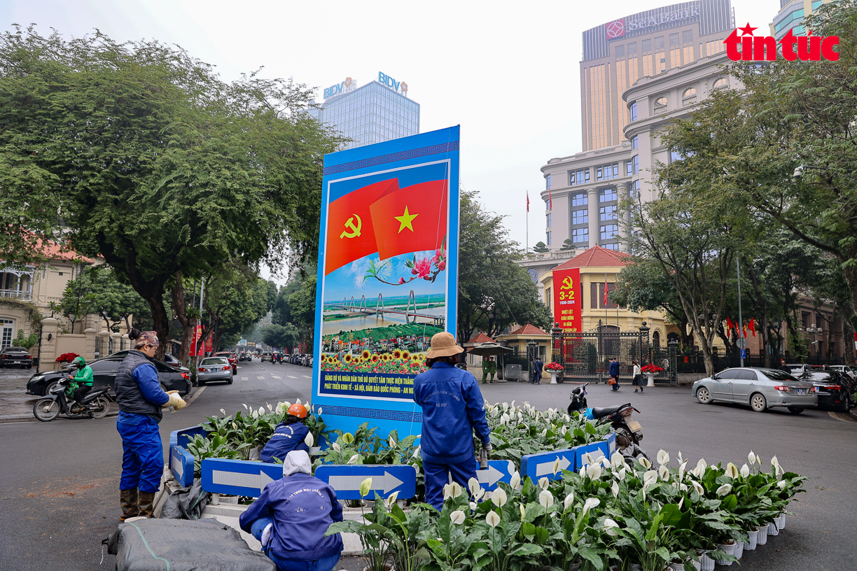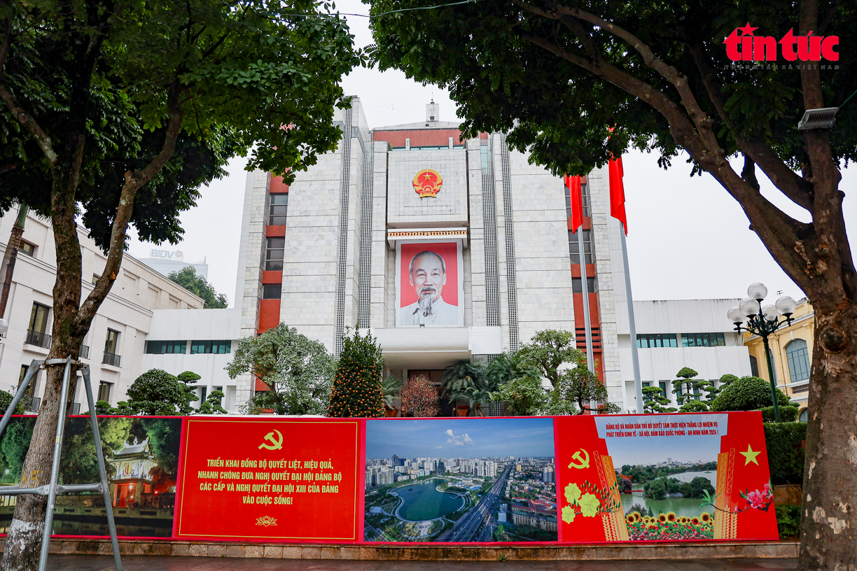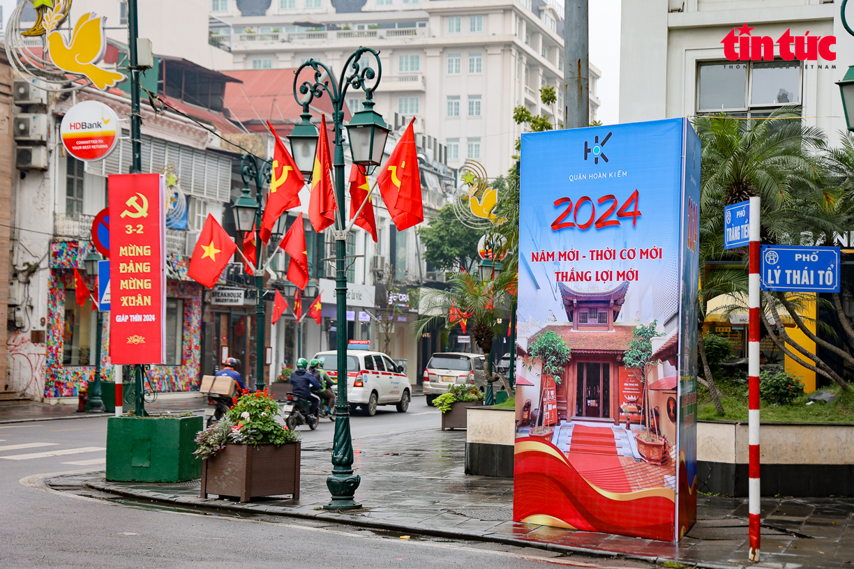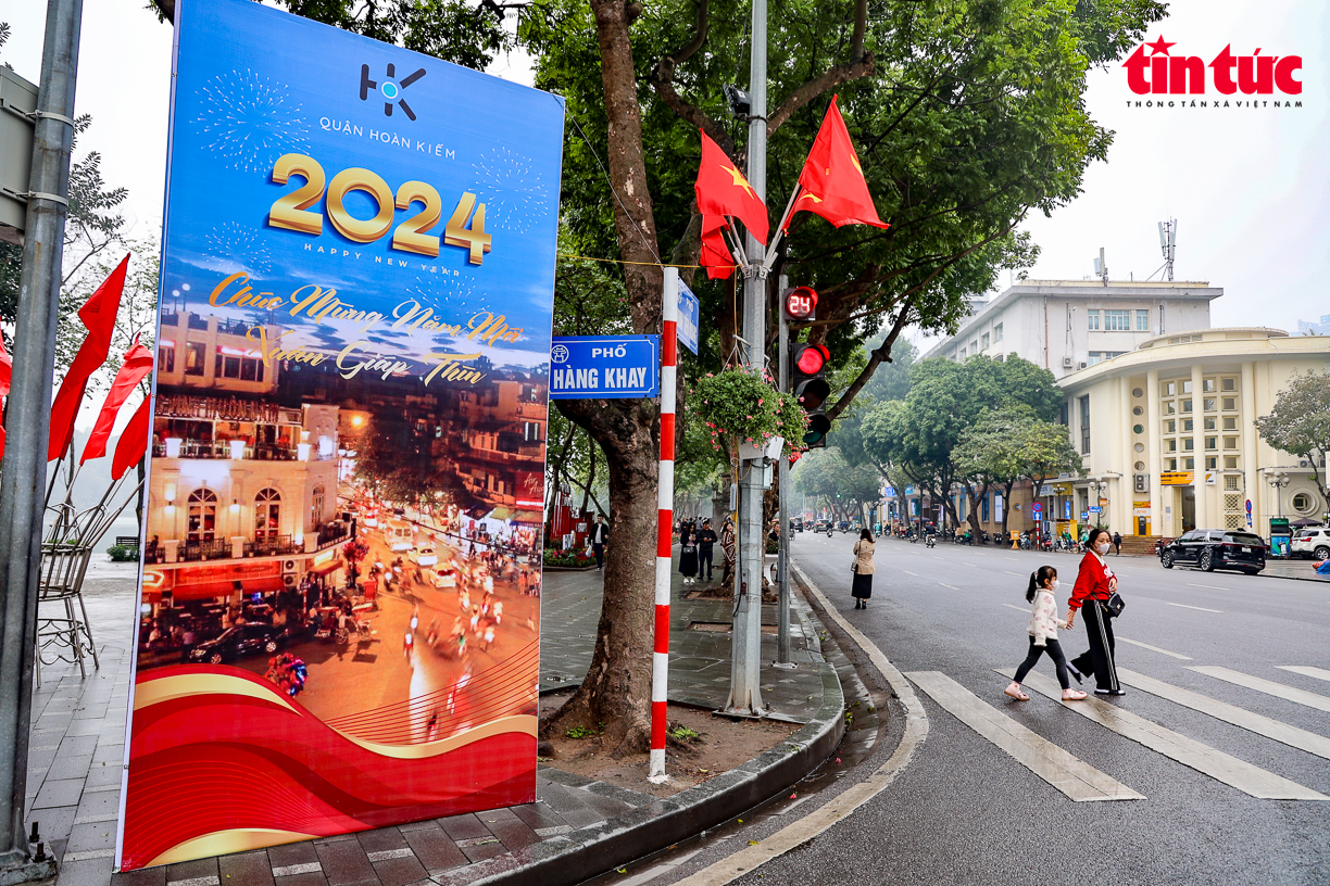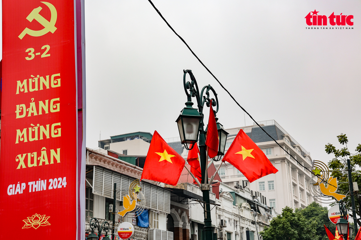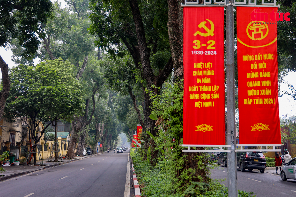 Trên khắp các tuyến phố của Thủ đô Hà Nội được trang trí pano tuyên truyền, cờ hoa rực rỡ chào mừng kỷ niệm 94 năm Ngày thành lập Đảng Cộng sản Việt Nam và đón chào năm mới Giáp Thìn 2024.