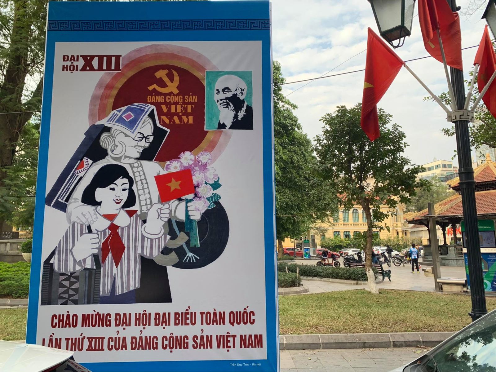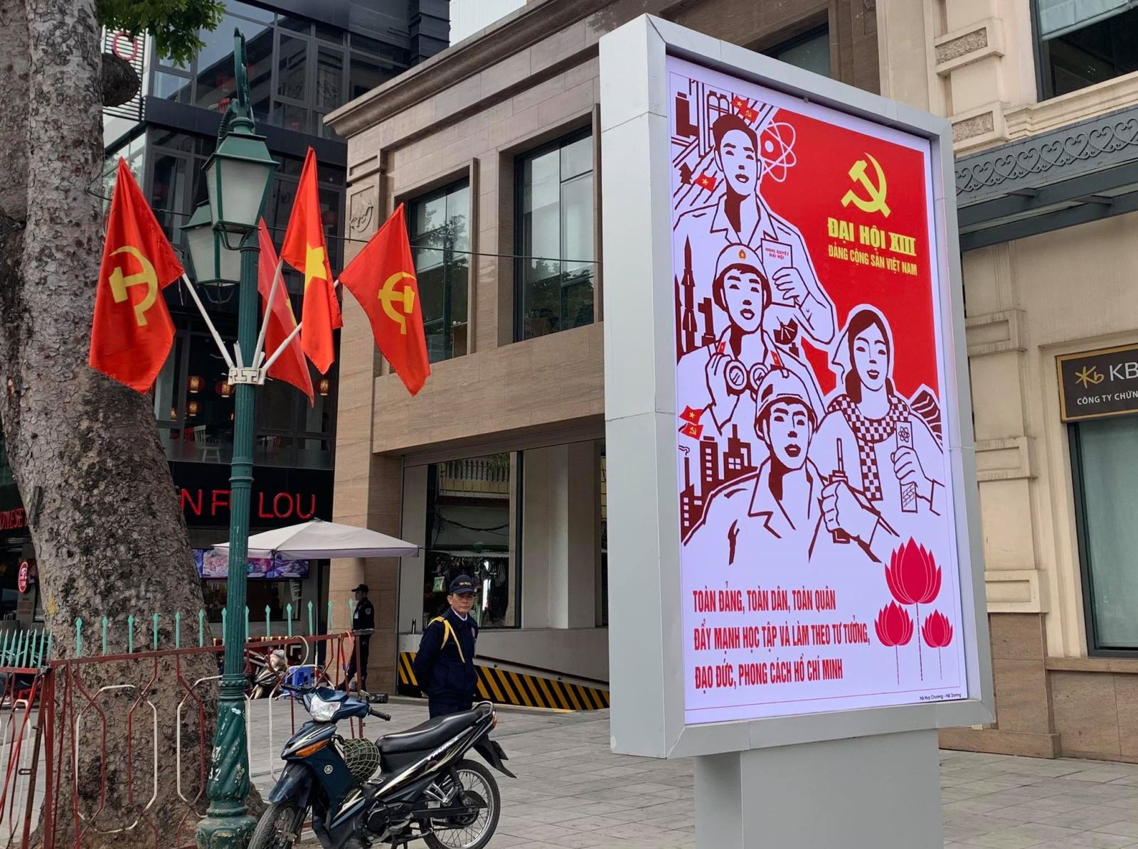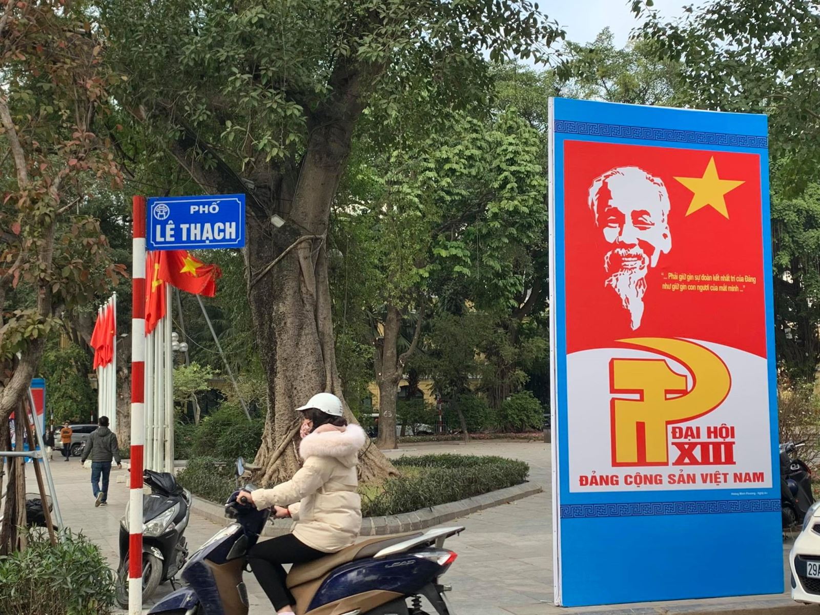 Băng rôn tuyên truyền Đại hội đại biểu toàn quốc lần thứ XIII của Đảng rực rỡ trên nhiều tuyến đường phố: Hai Bà Trưng (Hoàn Kiếm), Lê Văn Lương (Cầu Giấy), Lê Hồng Phong (Ba Đình),…