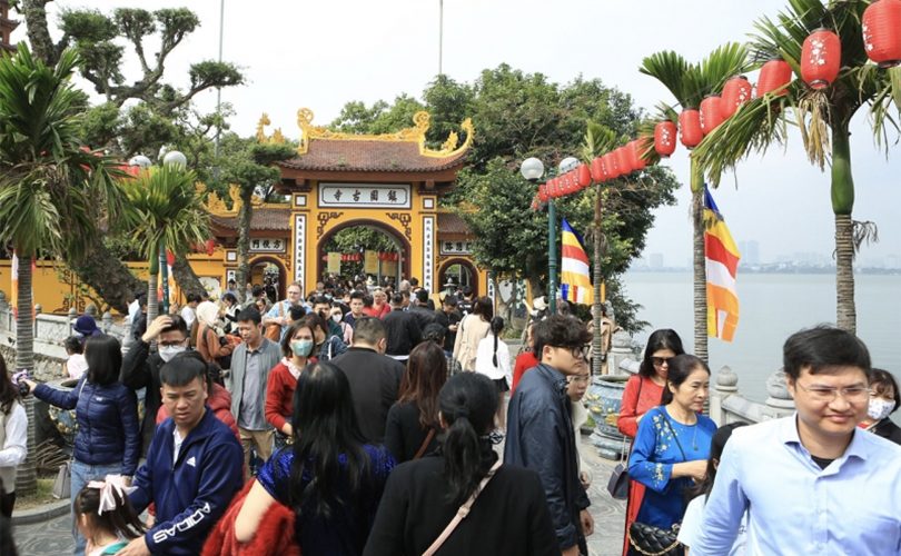 Chùa Trấn Quốc đón một lượng lớn khách du xuân.