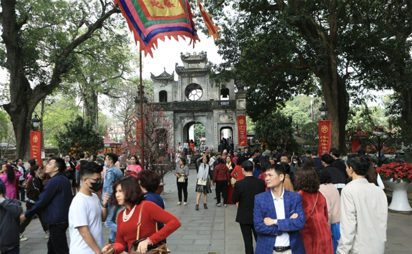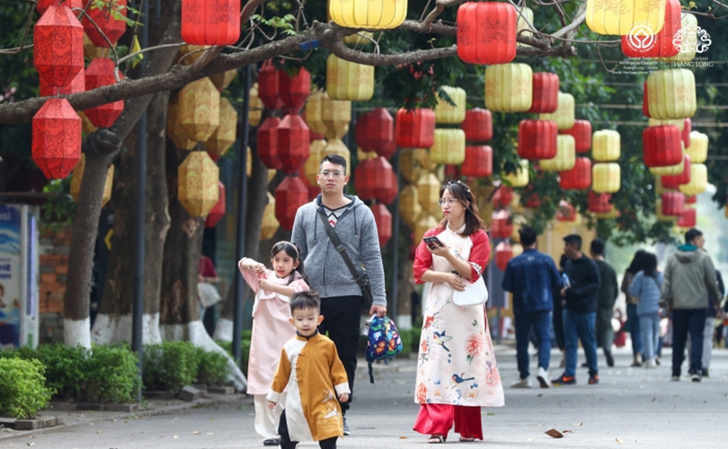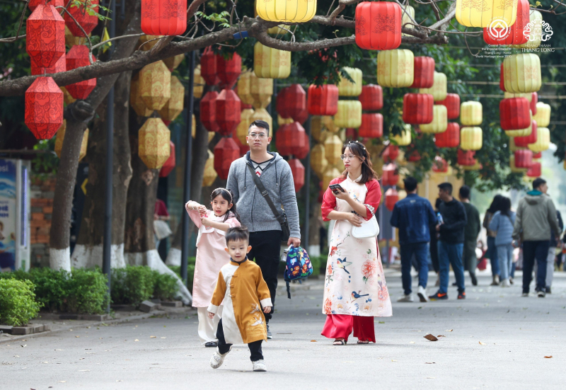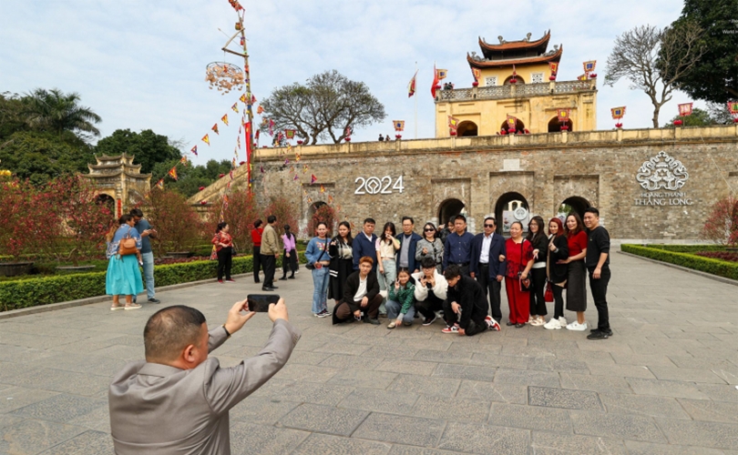 Khách du xuân tại Hoàng thành Thăng Long.