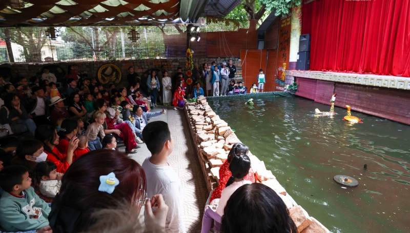 Chương trình biểu diễn múa rối nước tại Hoàng thành Thăng Long chật kín người xem.