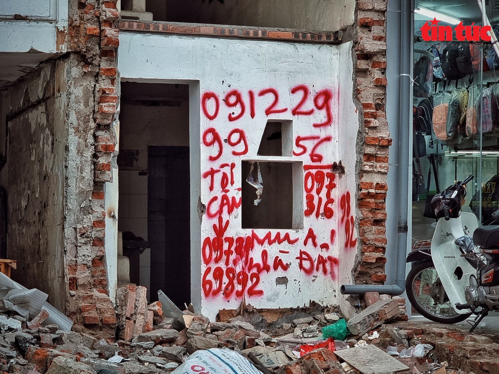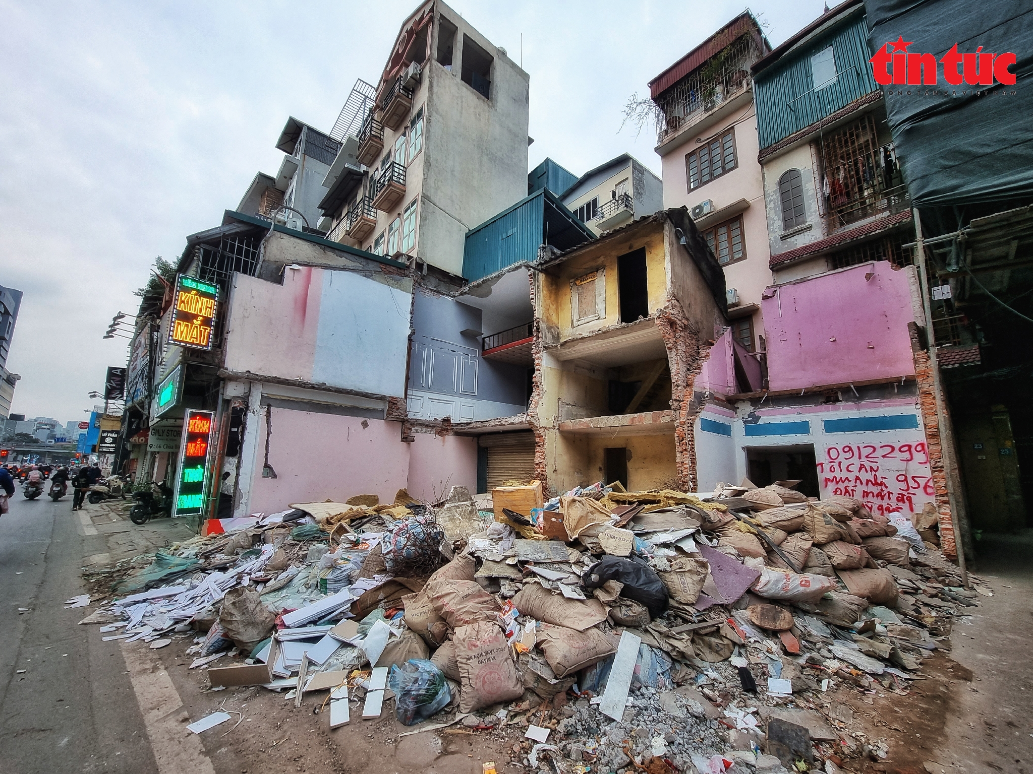 Cũng vì vậy, những ngôi nhà vừa bị phá dỡ này xuất hiện nhiều dòng chữ "cần mua đất mặt đường phố này" kèm theo số điện thoại của người mua.