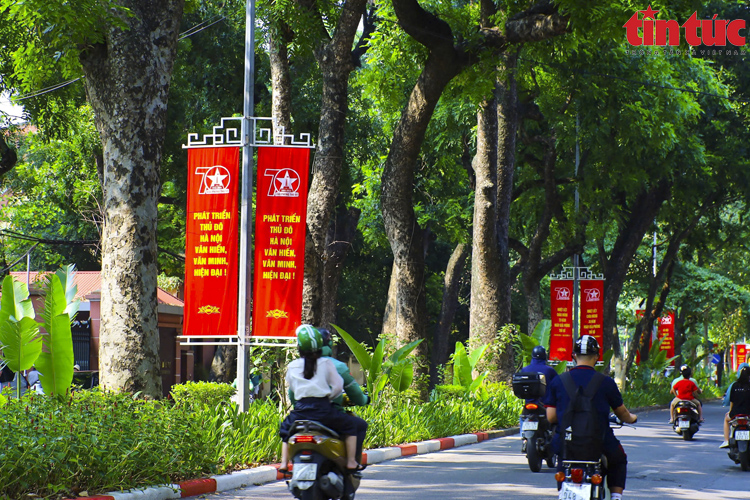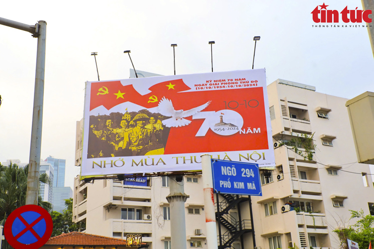 Hướng đến ngày kỷ niệm 70 năm Giải phóng Thủ đô (10/10/2954 – 10/10/2024), nhiều tuyến phố của Hà Nội đang được trang trí bằng cờ Tổ quốc, băng rôn, khẩu hiệu tuyên truyền, cổ động...