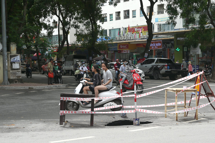 Khu vực bị sụt lún có mật độ giao thông đông đúc.