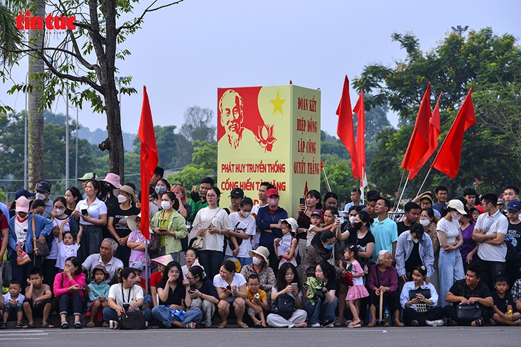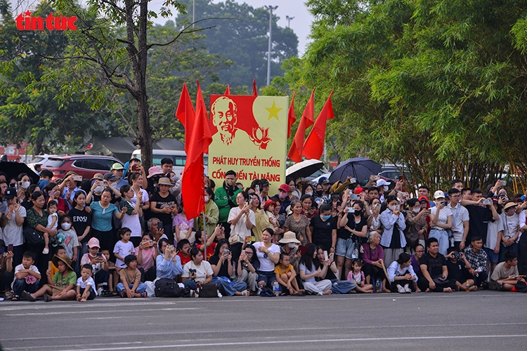 Người dân đủ mọi lứa tuổi, từ em nhỏ đến cụ già, tập trung đông đảo dọc theo tuyến đường luyện tập để cổ vũ các chiến sĩ.