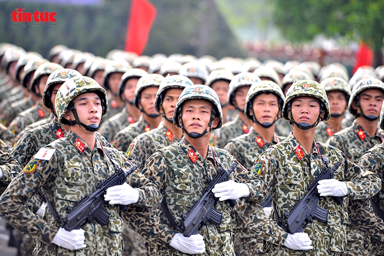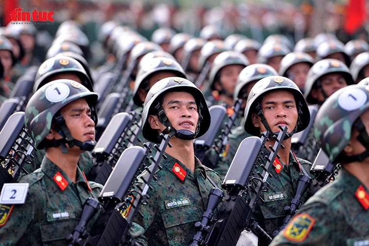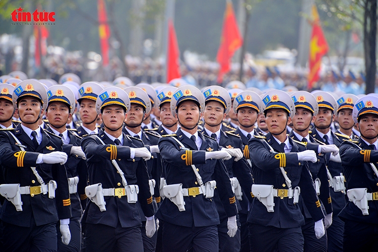 Những bước chân đều tăm tắp của các chiến sĩ tạo nên khí thế hào hùng.