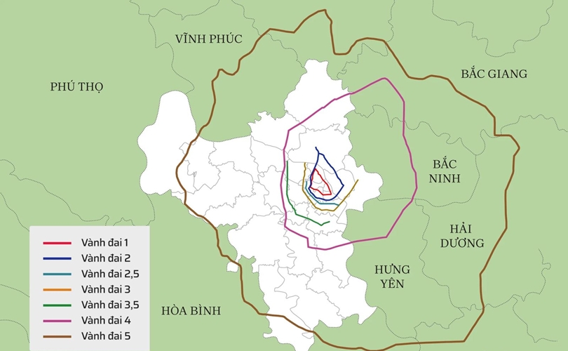 Hà Nội quy hoạch 7 tuyến vành đai với tổng chiều dài 285 km, trong đó 5 tuyến vành đai chính (1, 2, 3, 4, 5) và 2 tuyến vành đai hỗ trợ (2,5 và 3,5). Tuy nhiên, hiện nay chưa vành đai nào hoàn chỉnh.